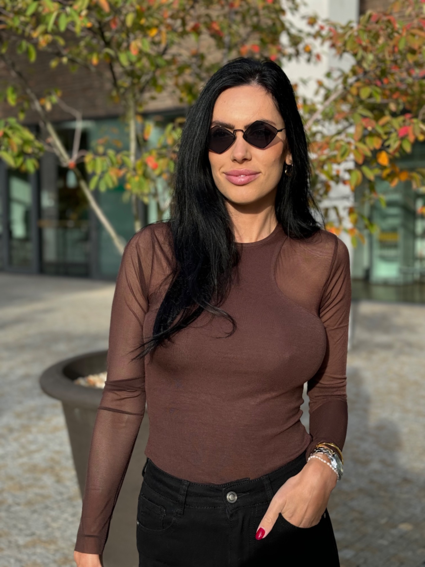 Top z příjemného a pružného materiálu. Romantický detail kamínku. Top má lodičkový výstřih. Foceno na postavě XS/172 cm. V nabídce ve více barvách. Barva : tmavě šedá, bordó Materiál: 50% Viscoza, 28% polyester, 22% polyamide Velikost: UNI délka: 60 cm, šířka přes prsa: 55 cm, délka rukávu: 57 cm