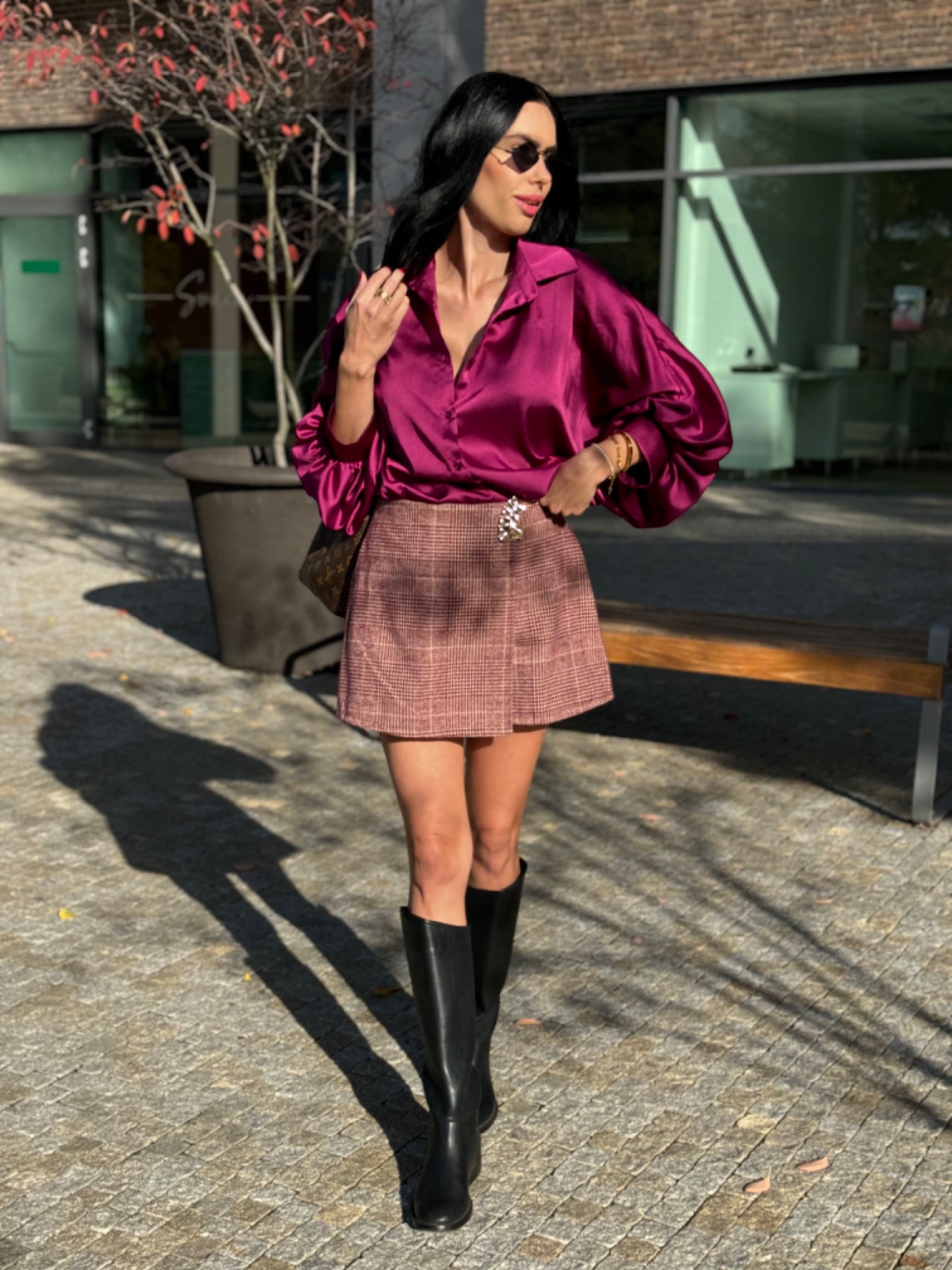 Sukně z fleesového materiálu, v mini délce a se všitými "kraťásky". Sukně má v pase gumu. Vhodná od xs-M. Foceno na postavě XS/172 cm. Barva: bordo, hnědá Materiál: 65% Viscoza, 30% nylon, 5% Elastnan Velikost: délka: 37 cm, pas: 31 cm (guma)