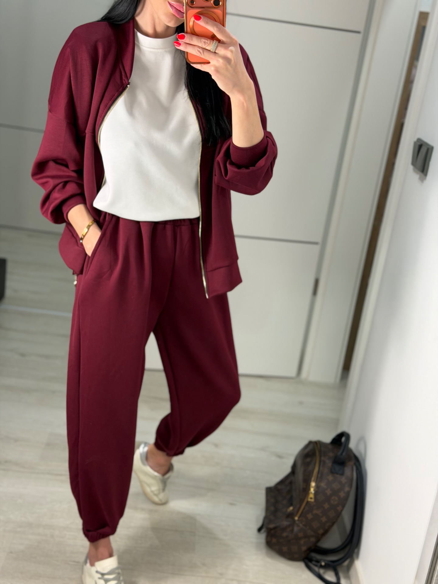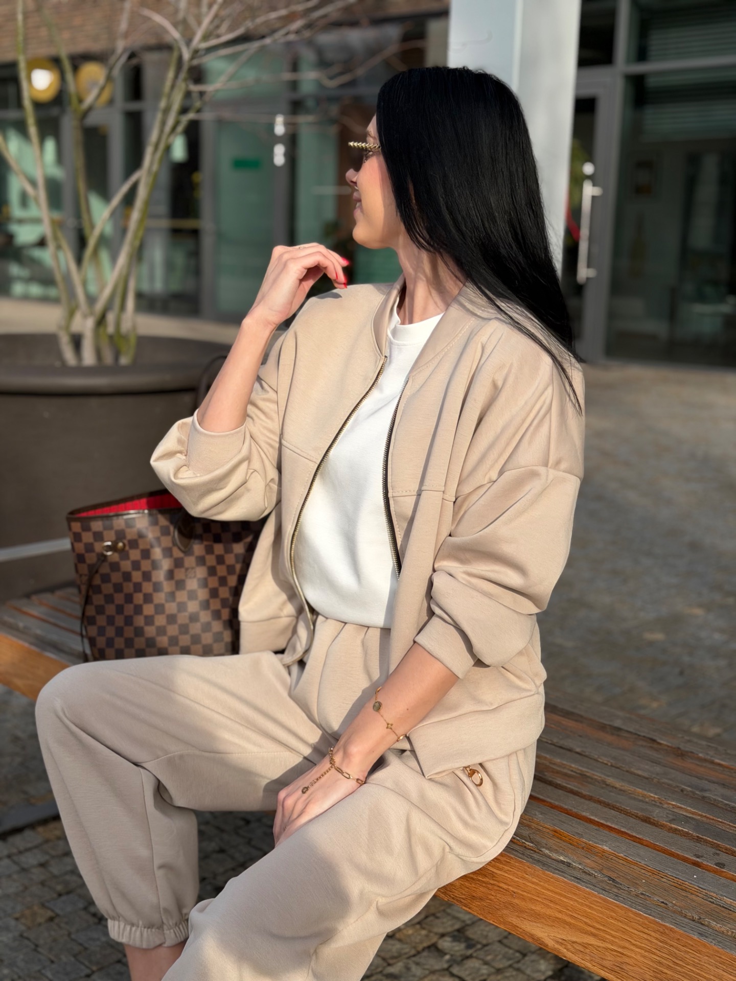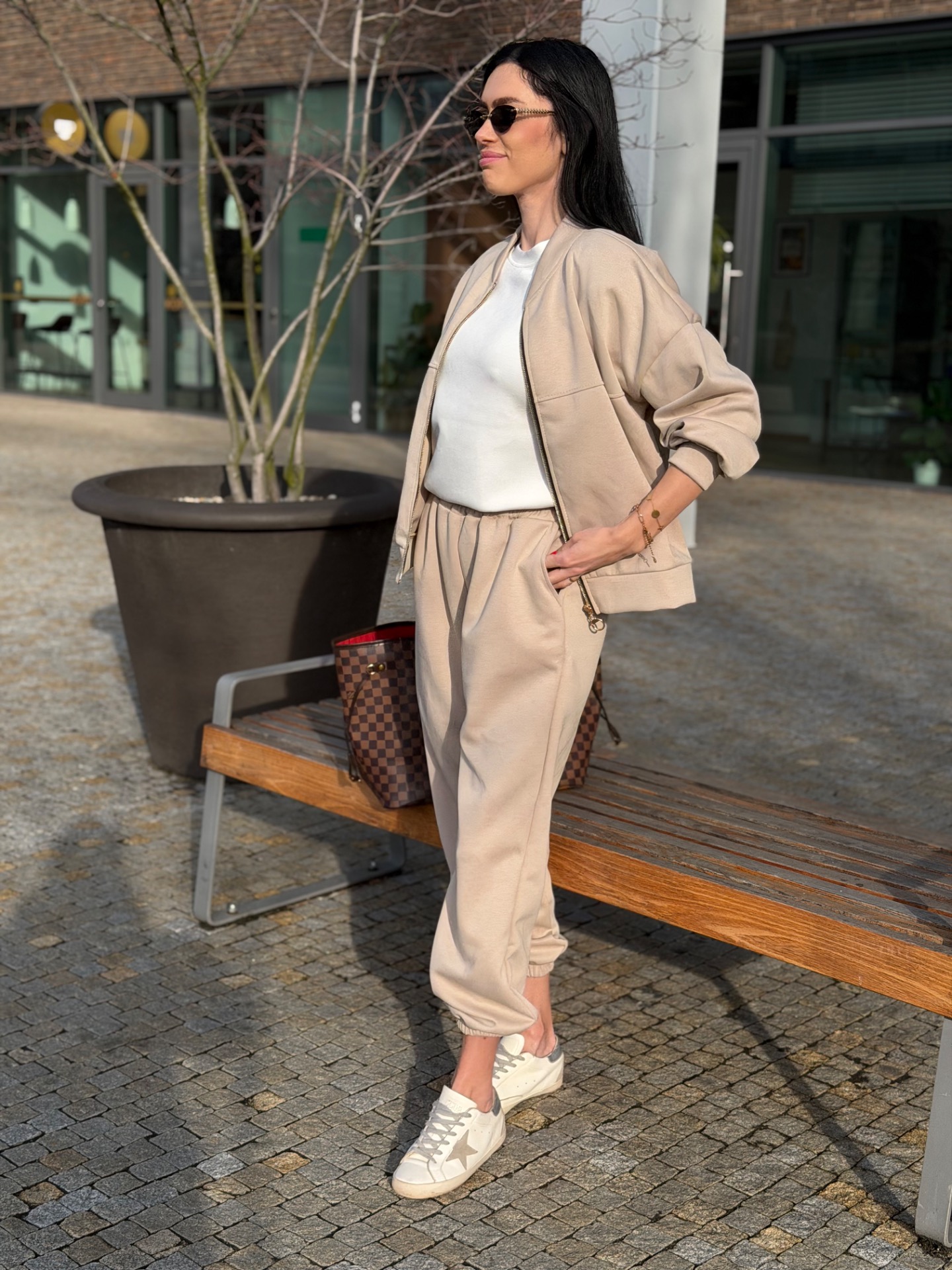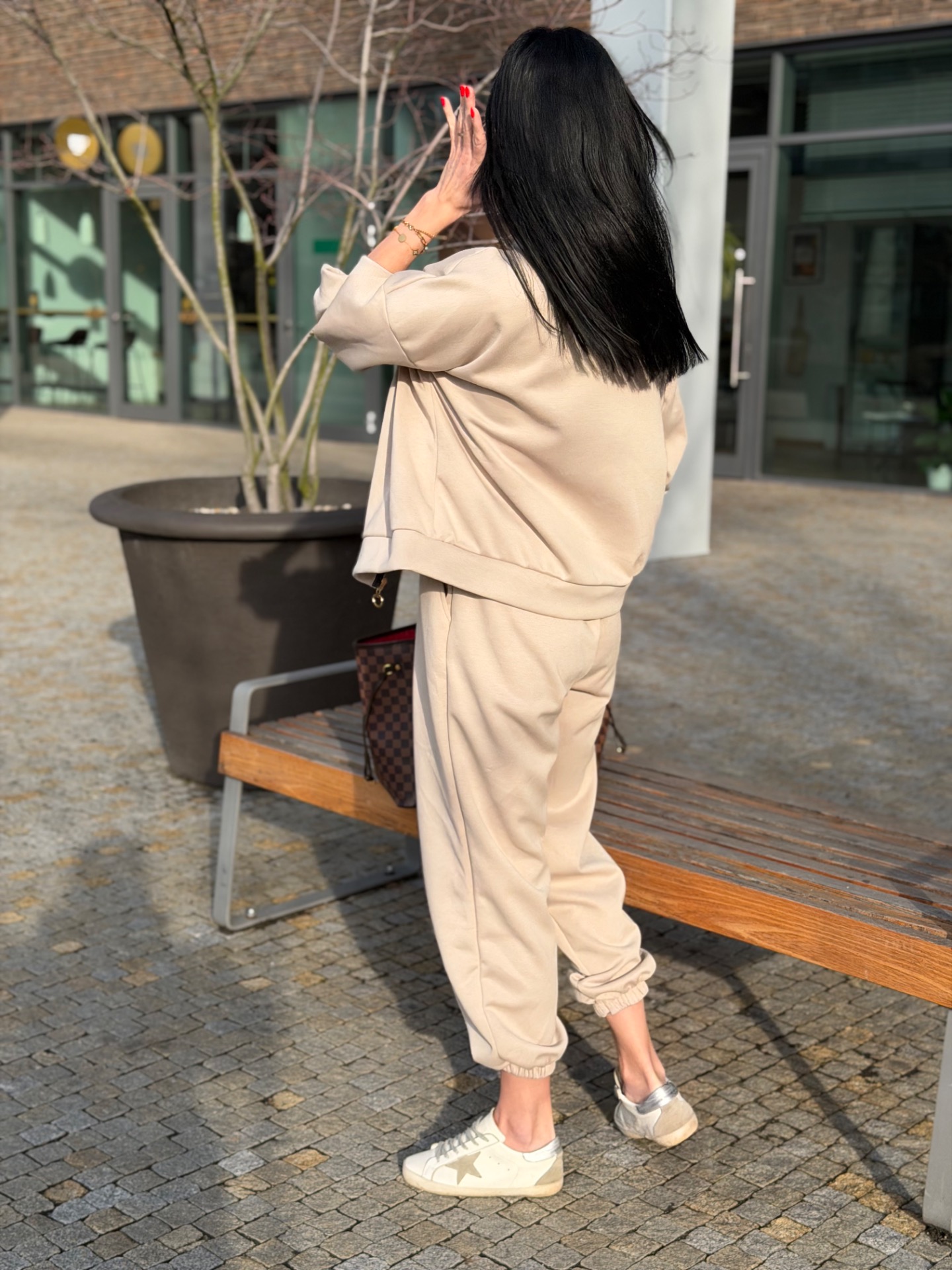 Nádherný, komplet podílem bavlny - velmi kvalitní materiál. Skvělý střih kalhot "sedne" každé postavě. Kalhoty v pase na širokou gumu. Mikina má délku akorád pod zadek. Foceno na postavě XS/172 cm. Komplet "sedne" XS-M.