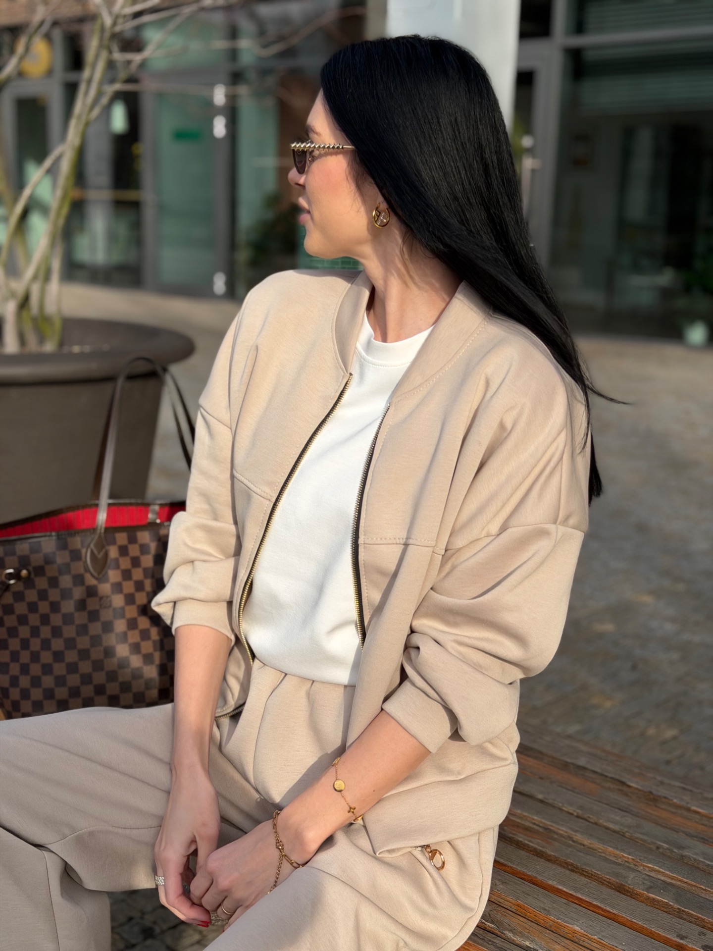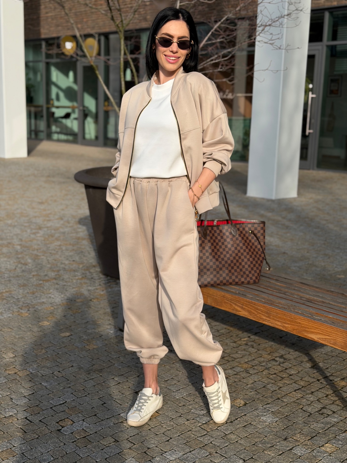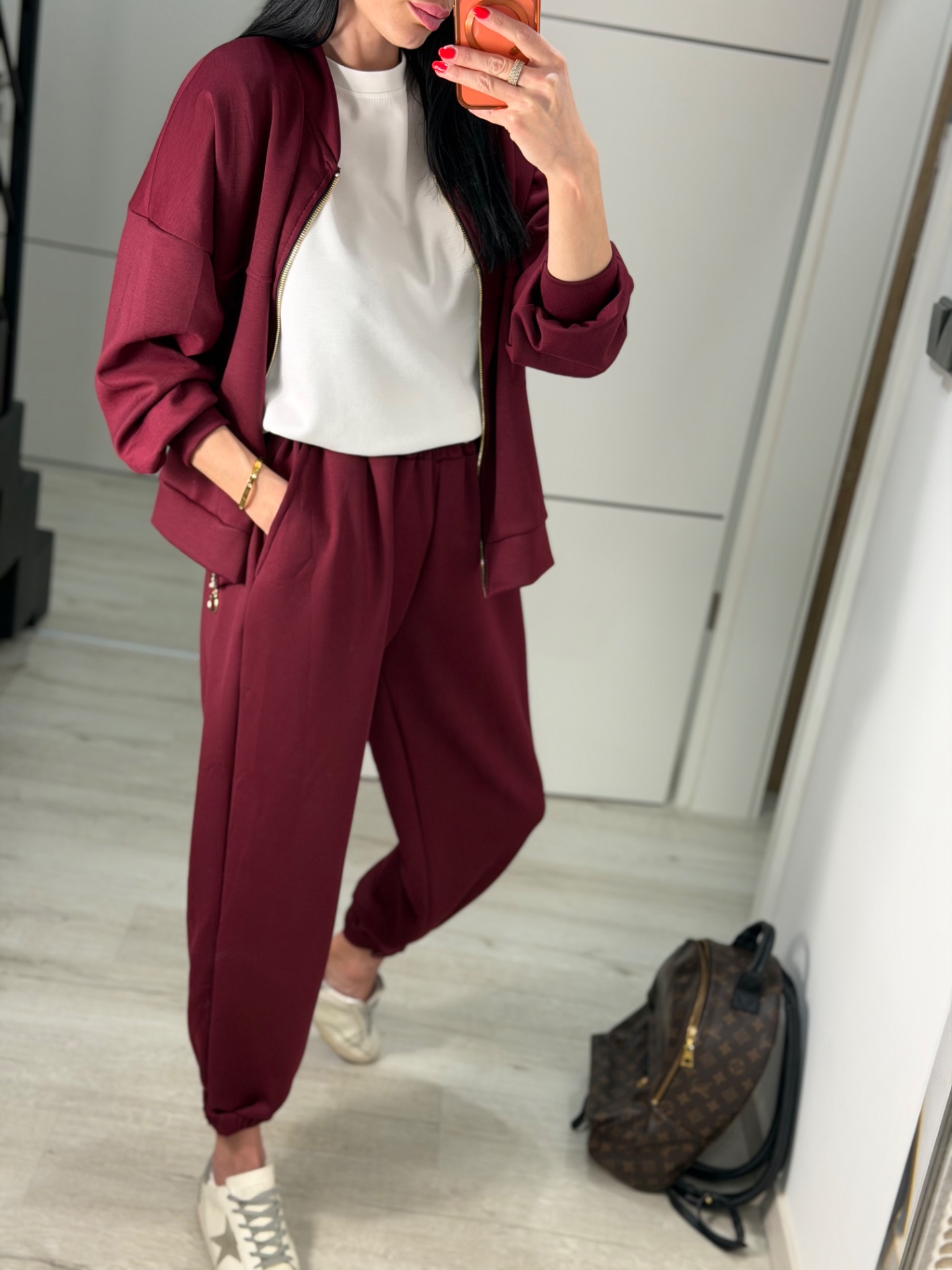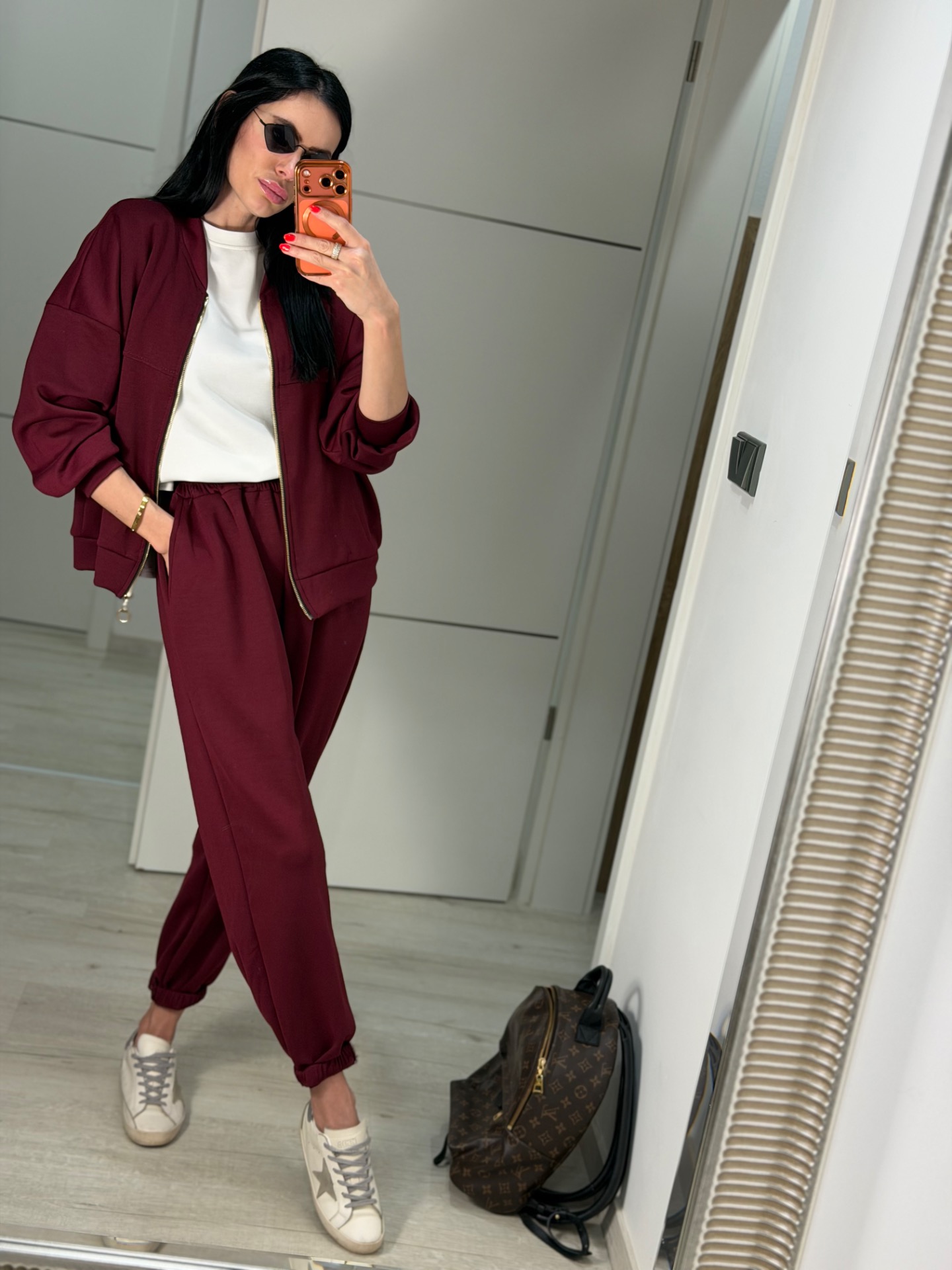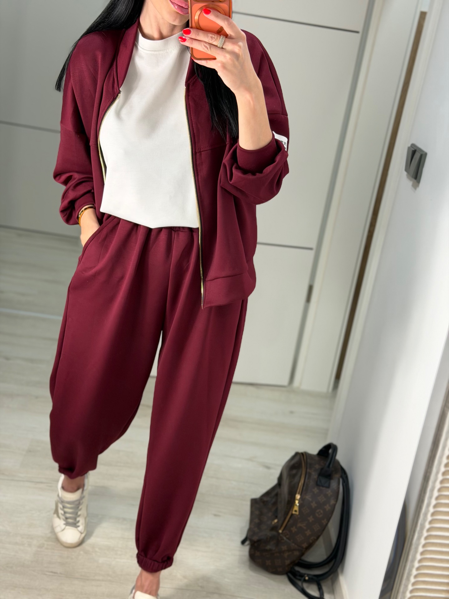 Nádherný, komplet podílem bavlny - velmi kvalitní materiál. Skvělý střih kalhot "sedne" každé postavě. Kalhoty v pase na širokou gumu. Mikina má délku akorád pod zadek. Foceno na postavě XS/172 cm. Komplet "sedne" XS-M.