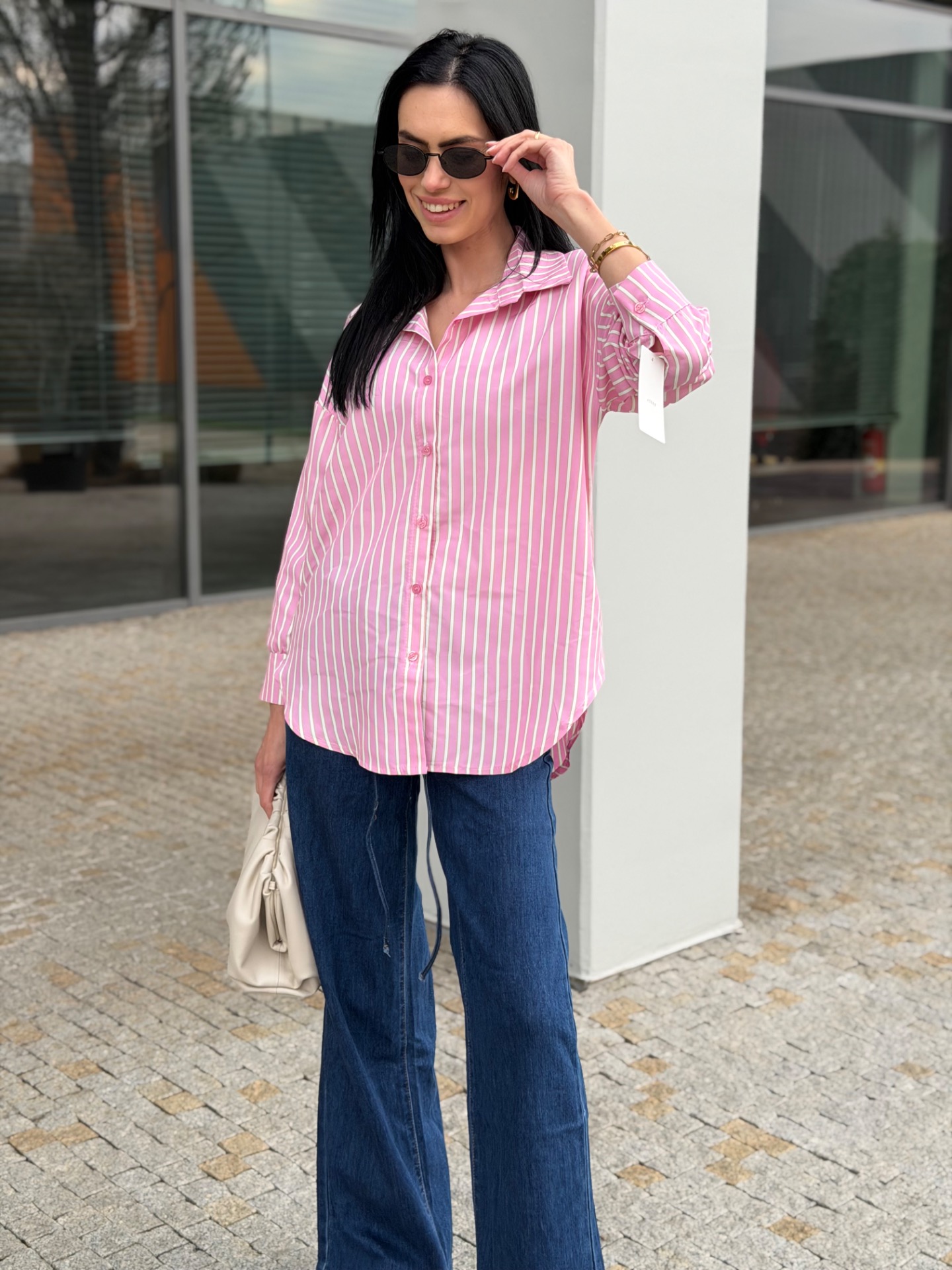Košile v oblíbeném "oversize" střihu, skvělý, nemačkavý materiál. Košile na knoflíčky a z nemačkavého materiálu.Na bocích vykrojená. V nabídce ve více barvách.