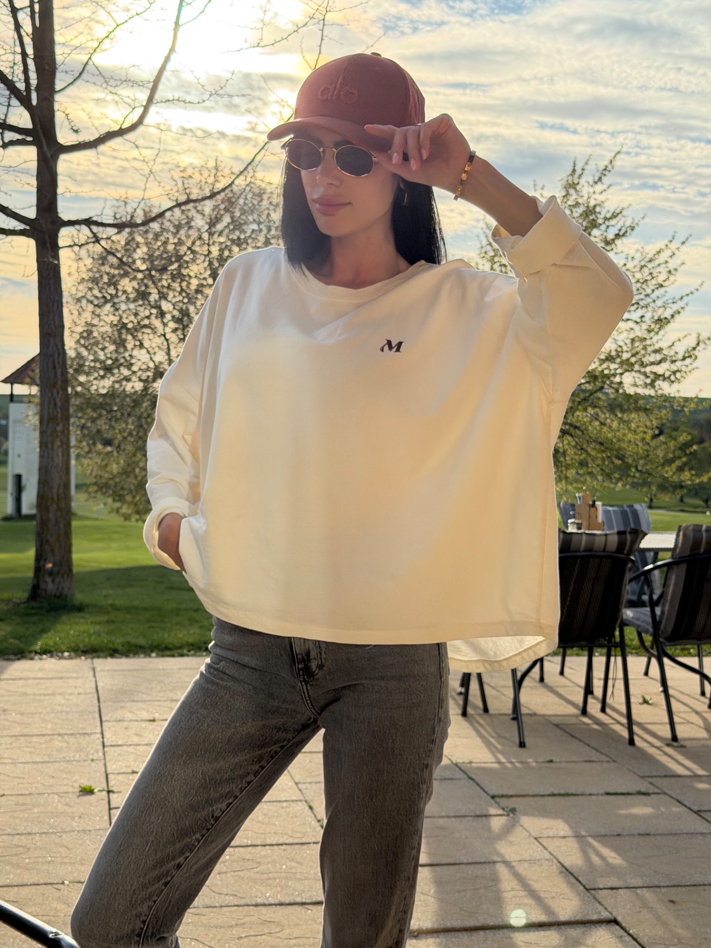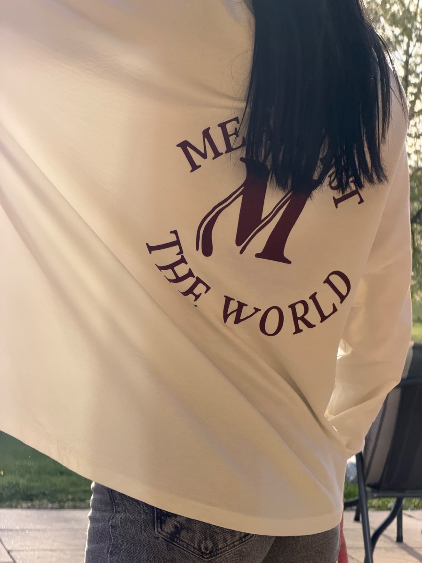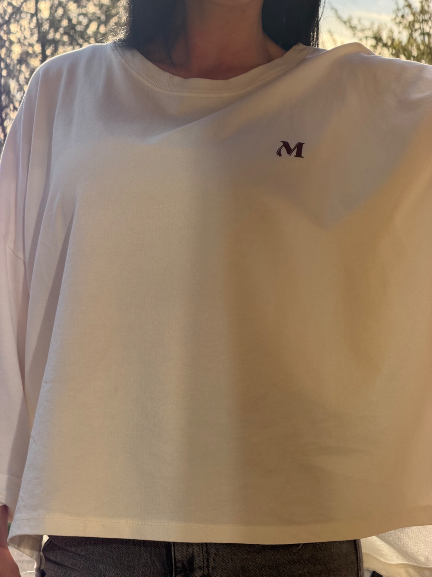 Bavlněná mikina / top ve volném střihu. Mikina není zateplená-vhodná na jaro. Velký potisk na zádech. Foceno na postavě XS/172 cm. V nabídce v několika barvách.