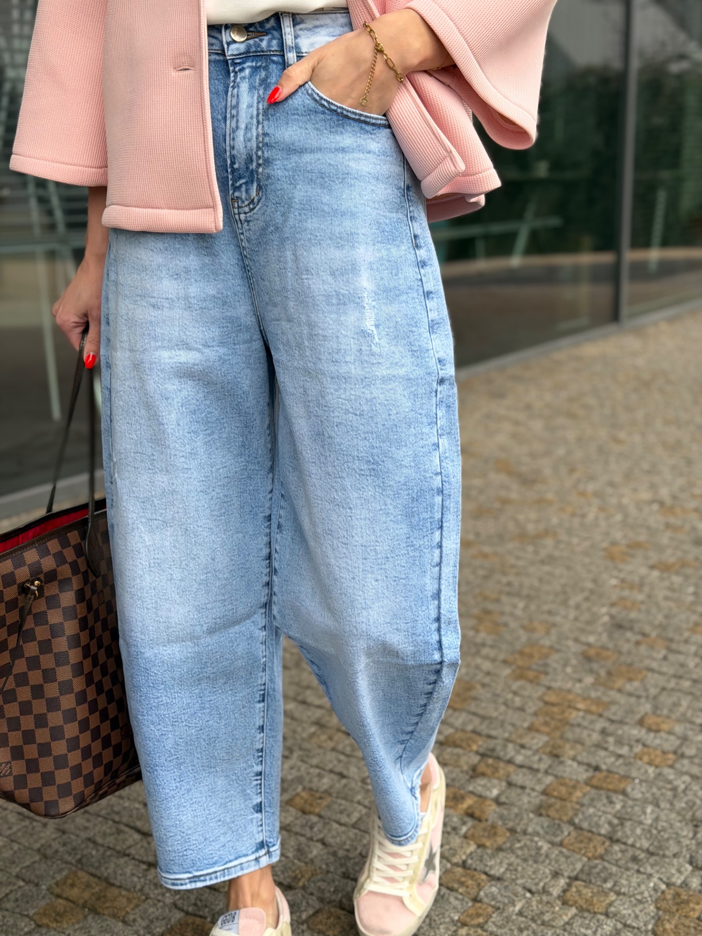 Extra měkké džíny s moderními, širokými nohavicemi, které jsou nyní velký hit. Kalhoty mají moderní balónovy střih. Modelka běžně nosí vel. XS na 172 cm vysoké postavě na sobě má vel.S.