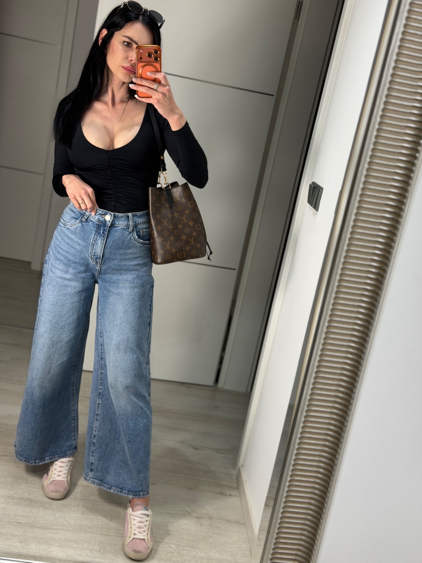 Extra měkké džíny s moderními, širokými nohavicemi, které jsou nyní velký hit. Materiál nemačkavý. Skvěle "padnou" každé postavě. Kalhoty mají vyšší pas, který "stahuje bříško". Modelka má na sobě vel.XS na 172 cm vysoké postavě.