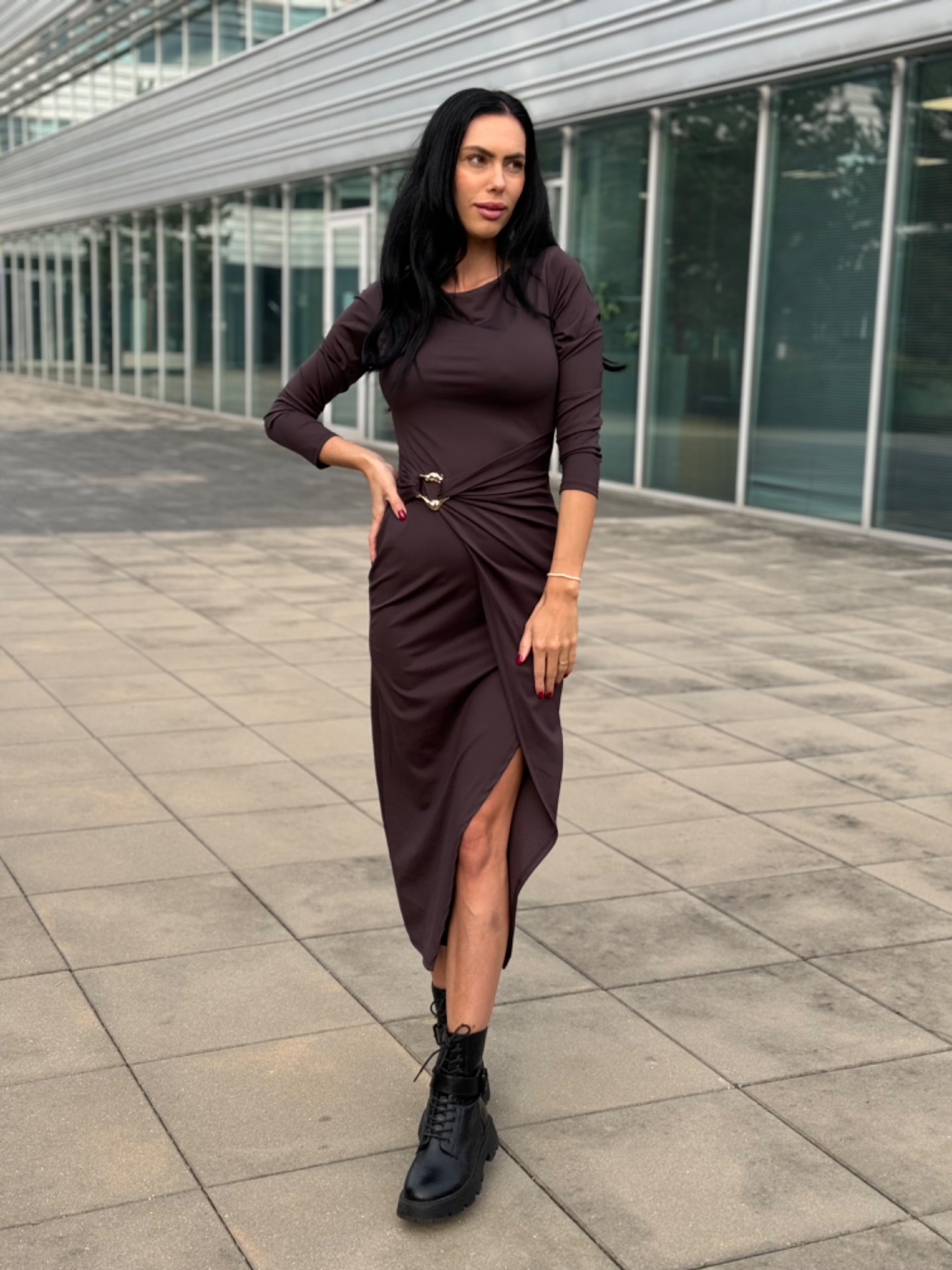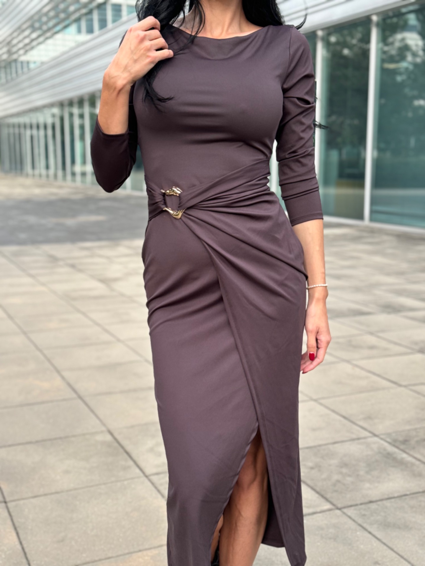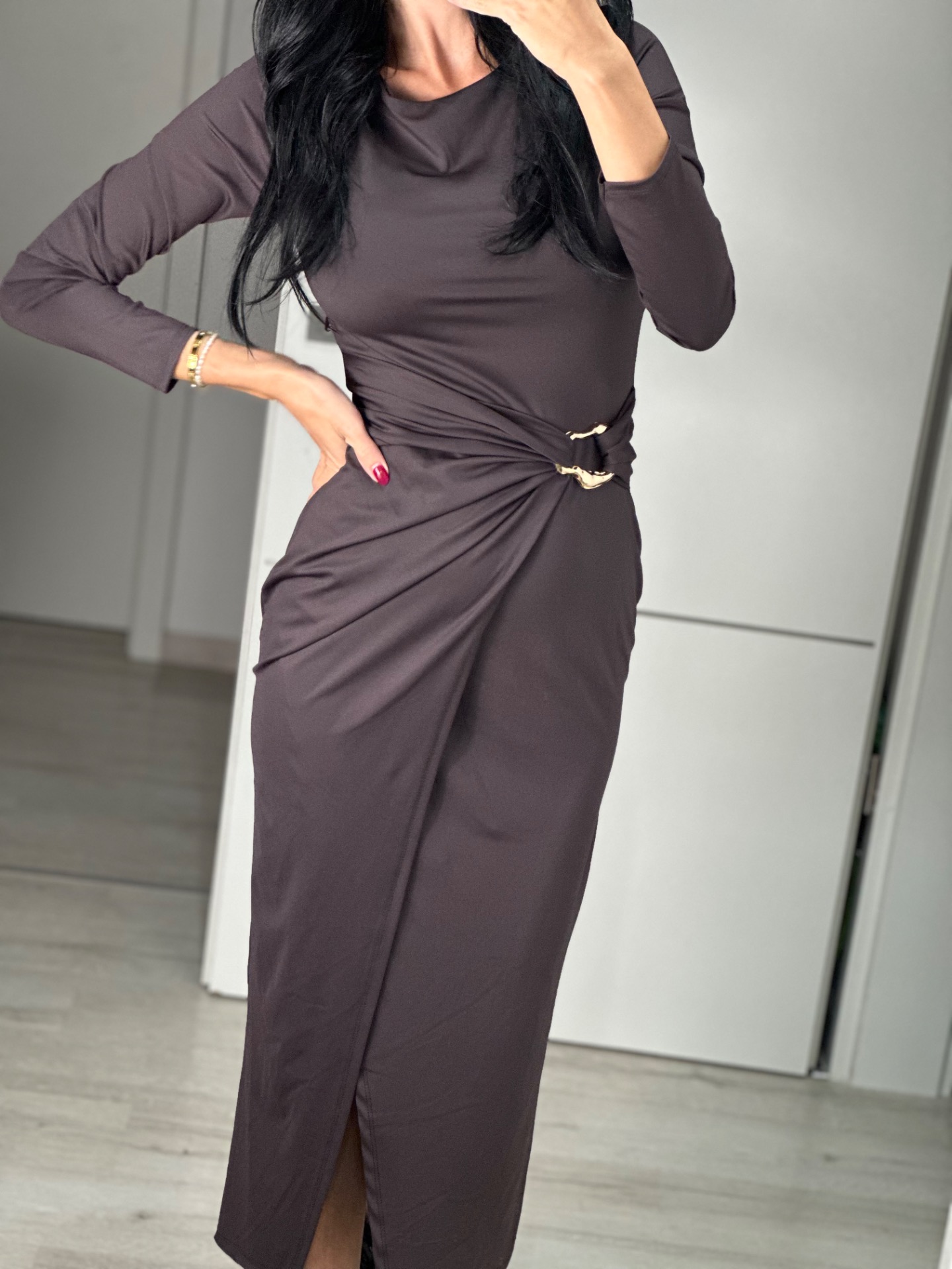 Elastické šaty v moderní midi délce. Šaty "dělají krásnou ženskou siluetu". Řasení v pase. Splývavý a nemačkavý materiál. Šaty mají decentní rozparek. Extra pružný materiál.