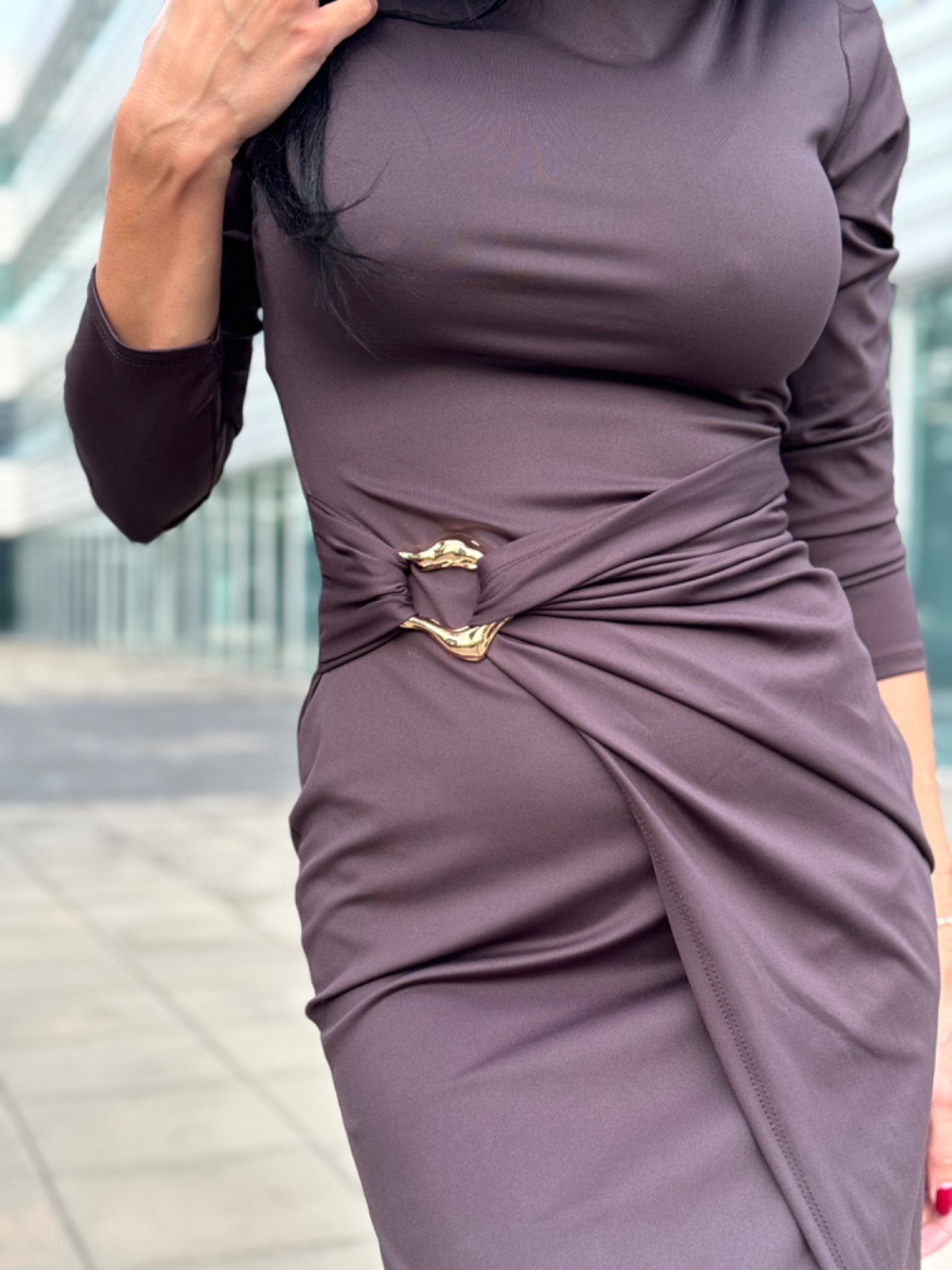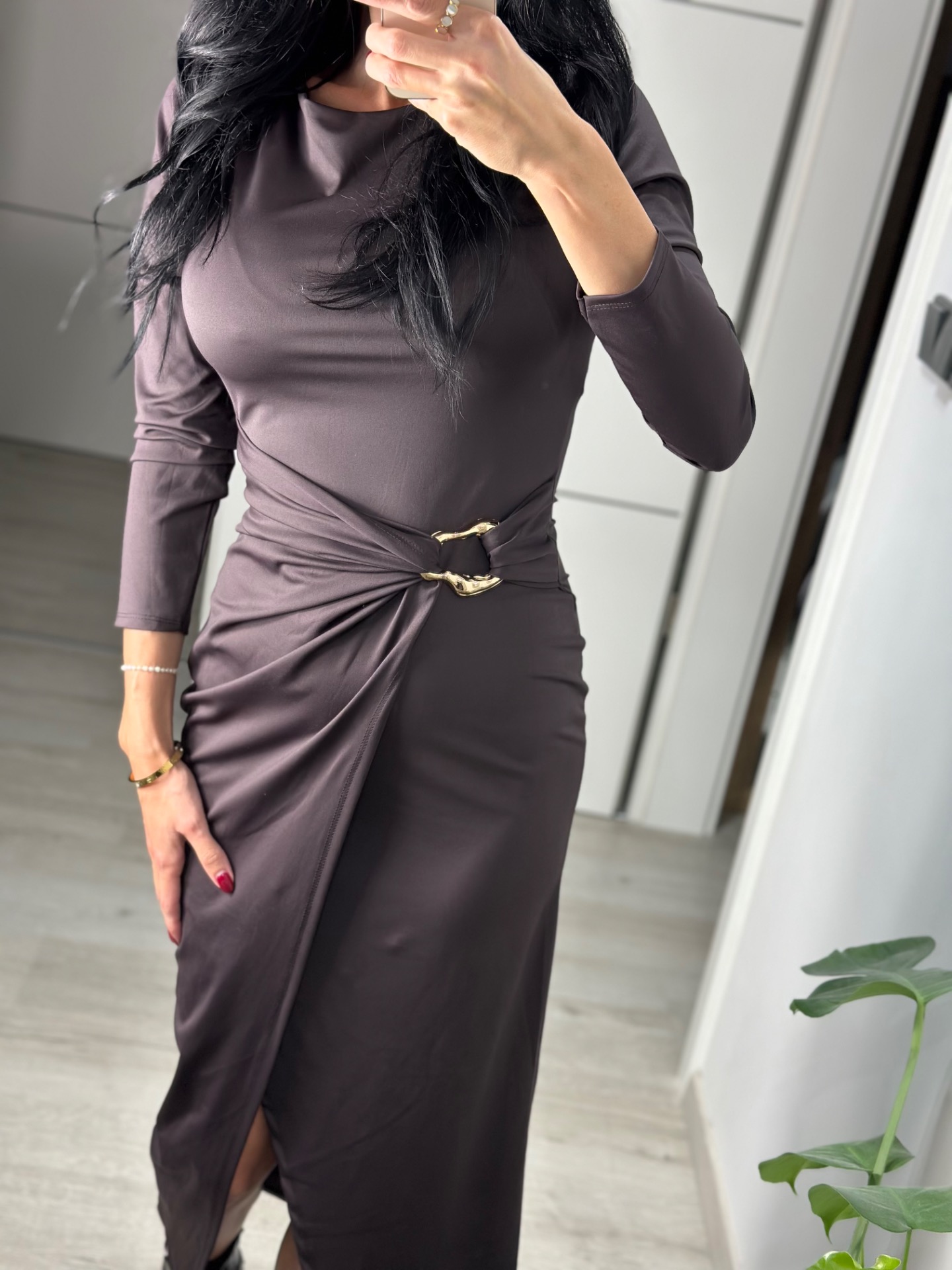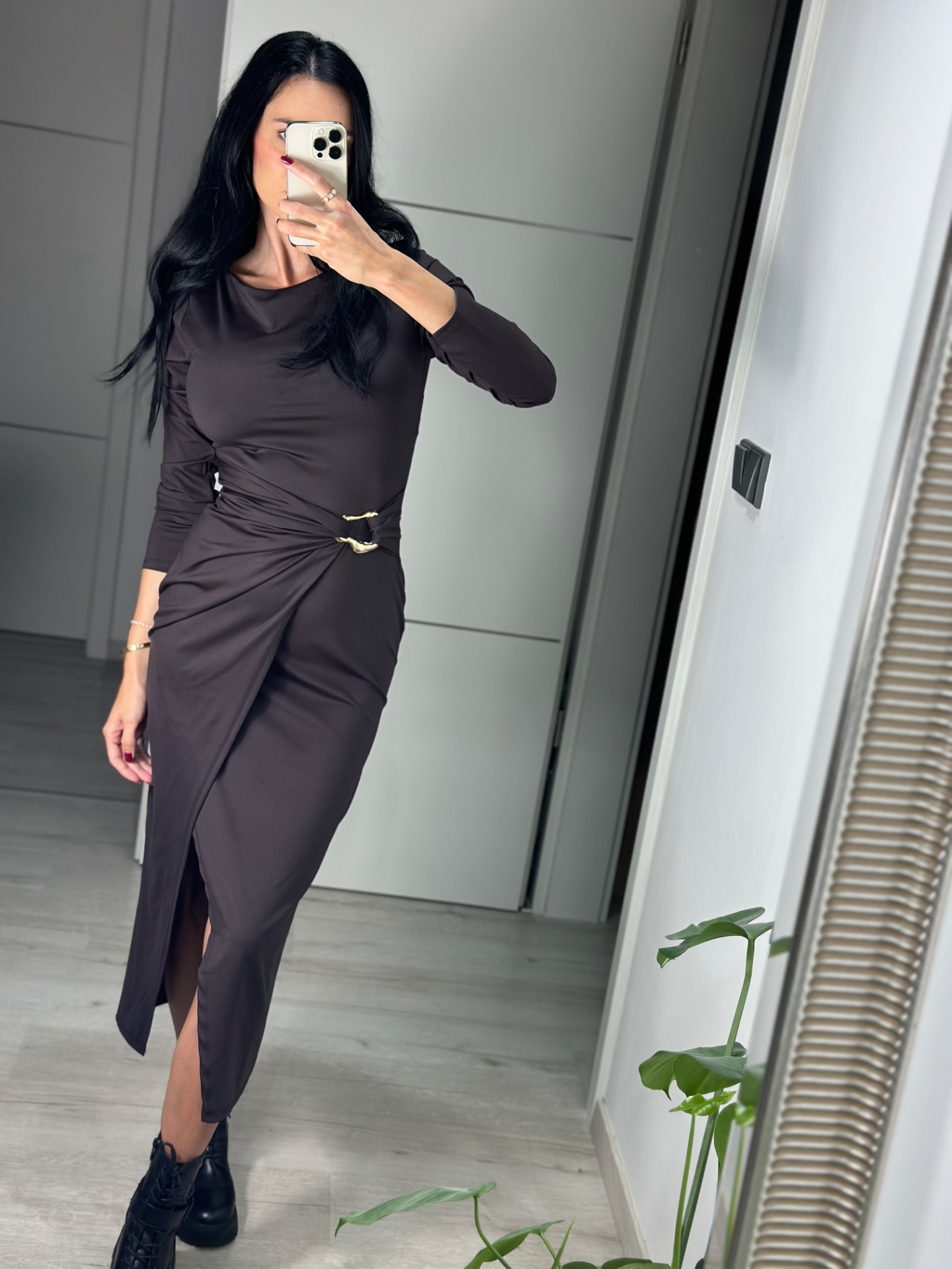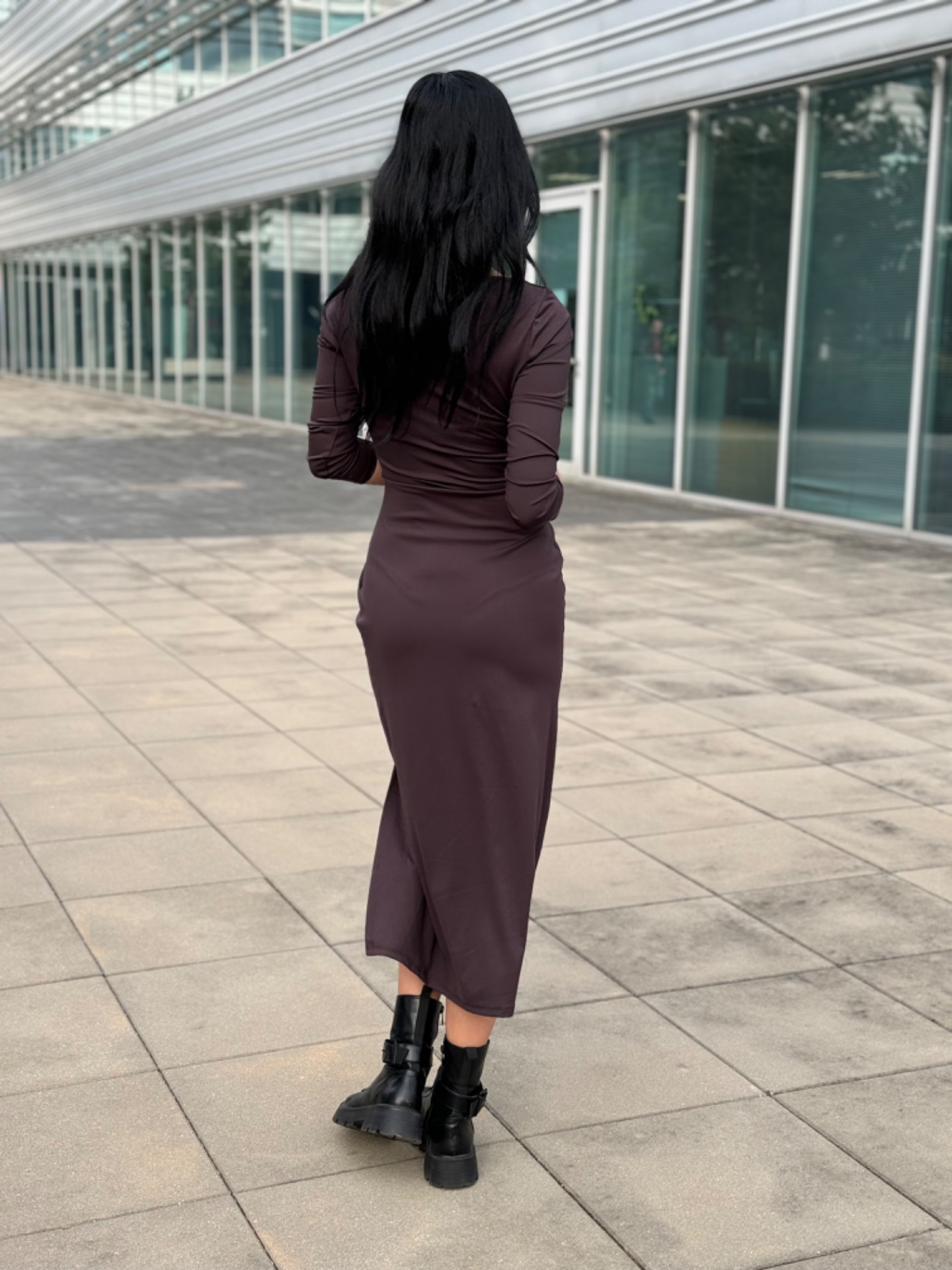 Elastické šaty v moderní midi délce. Šaty "dělají krásnou ženskou siluetu". Řasení v pase. Splývavý a nemačkavý materiál. Šaty mají decentní rozparek. Extra pružný materiál.