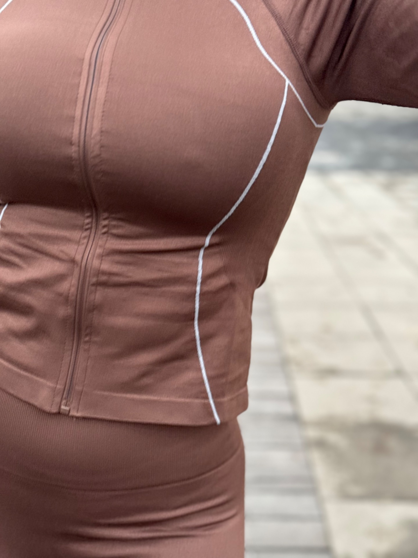 Elastický komplet z velmi kvalitního materiálu. Skvělý push-up efekt na zadku. Pas krásně stáhne bříško.Top na zapínáni na zip. Foceno na postavě XS/172 cm. Komplet "sedne" XS-L. V nabídce ve více barvách.