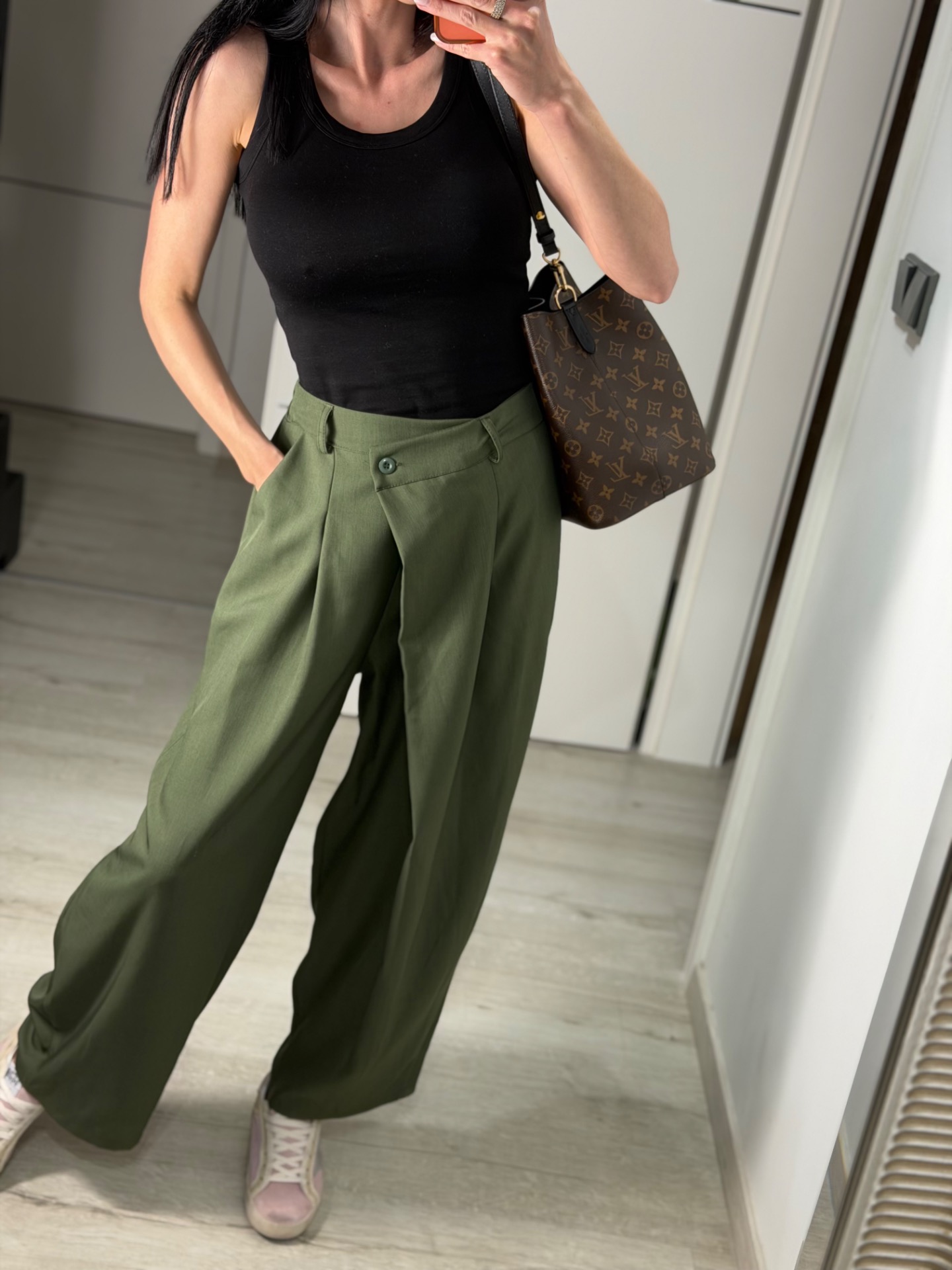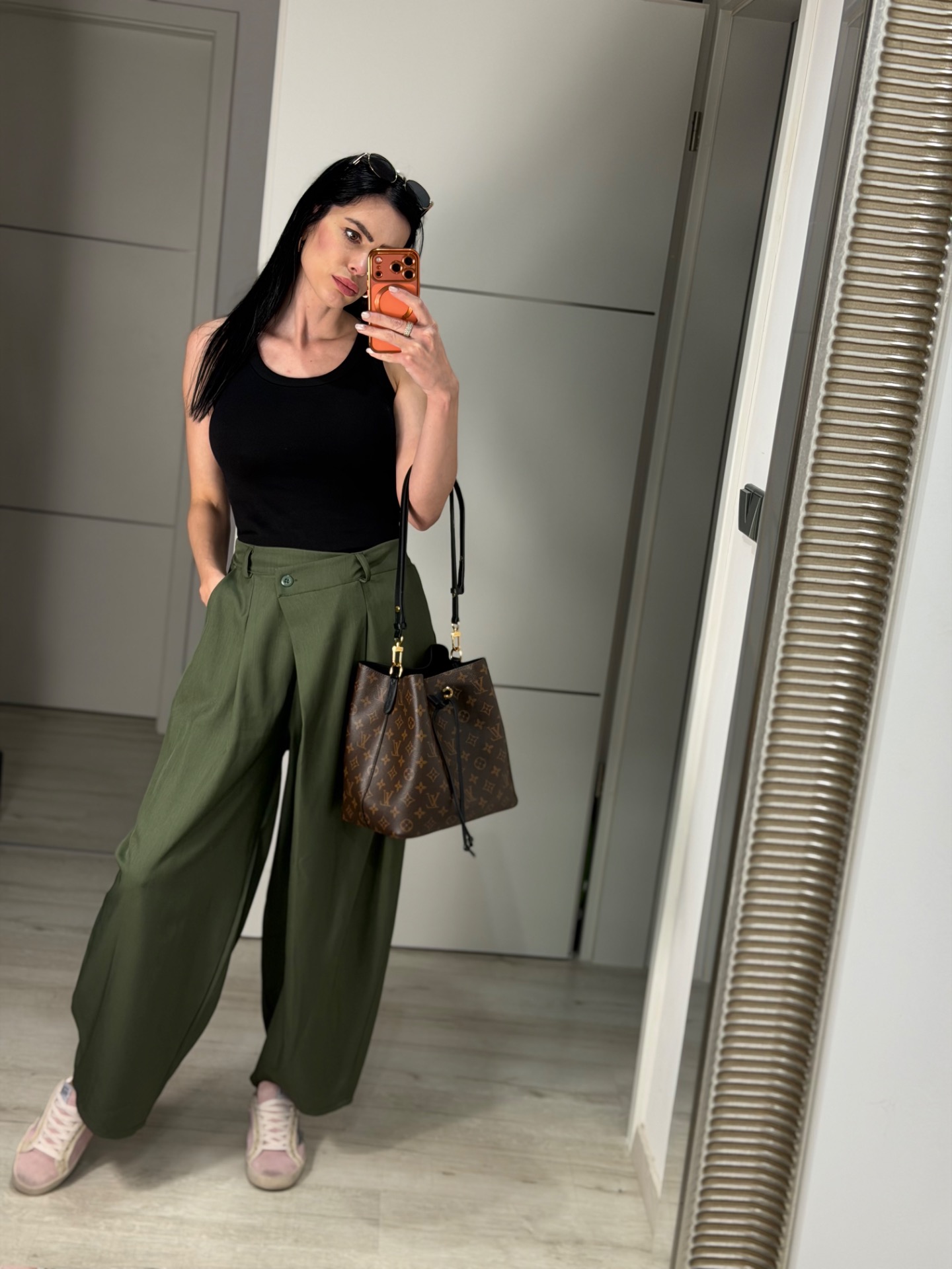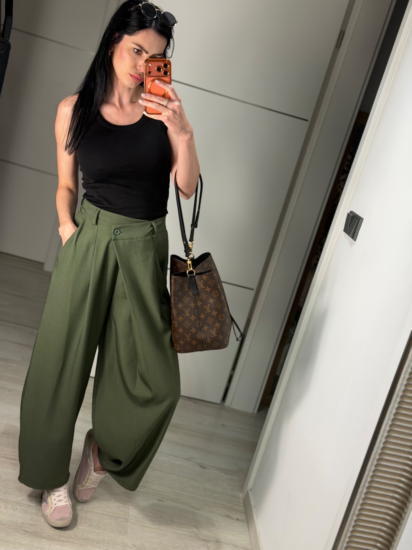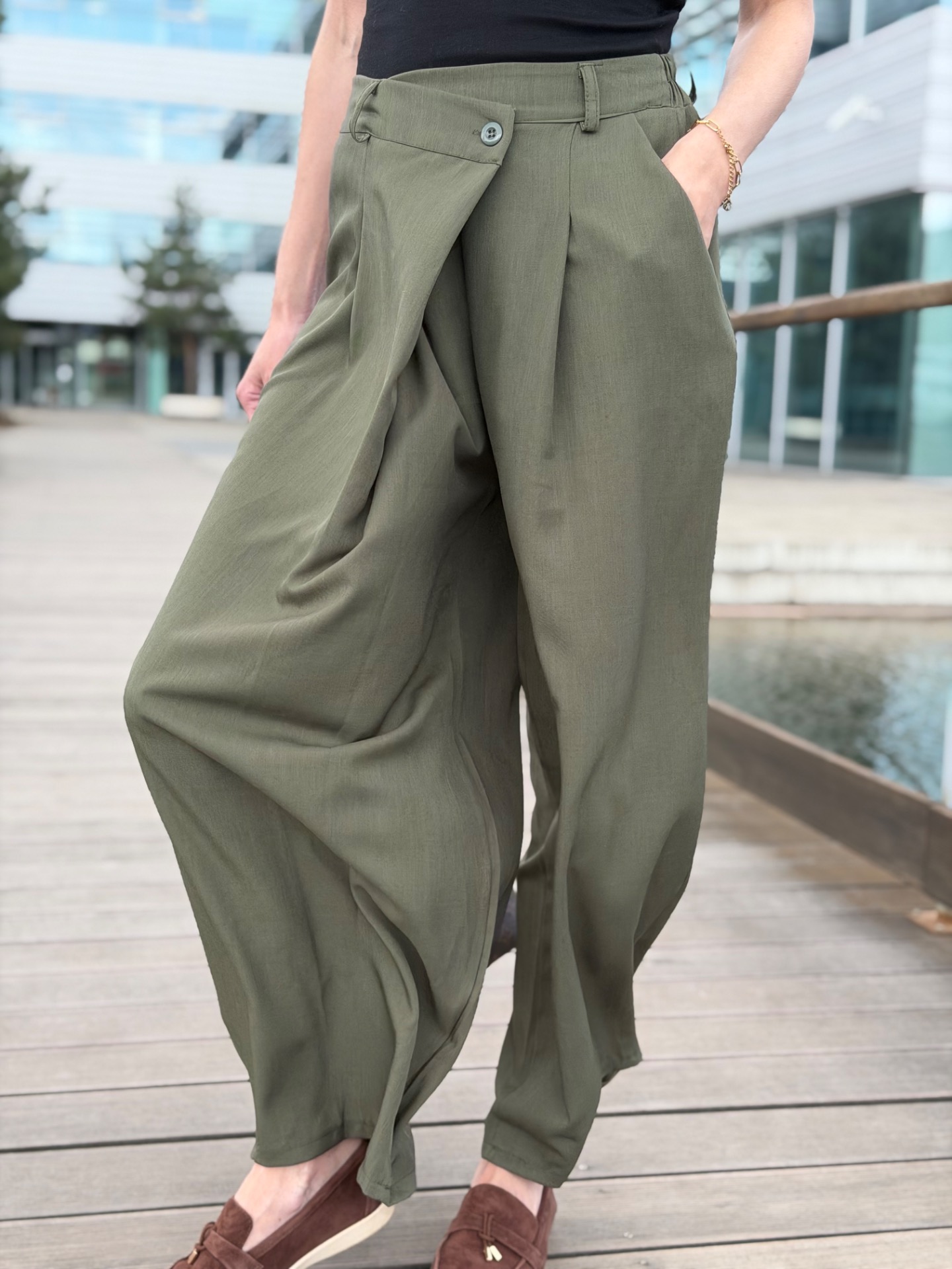 Elastické kalhoty balónové střihu. Materiál je nemačkavý, nevytahuje se a drží svůj tvar. Po stránách kapsy. Skvěle "padnou" každé postavě. Kalhoty mají v pase gumu . Modelka běžně nosí vel. XS na 172 cm vysoké postavě. V nabídce ve více barvách.