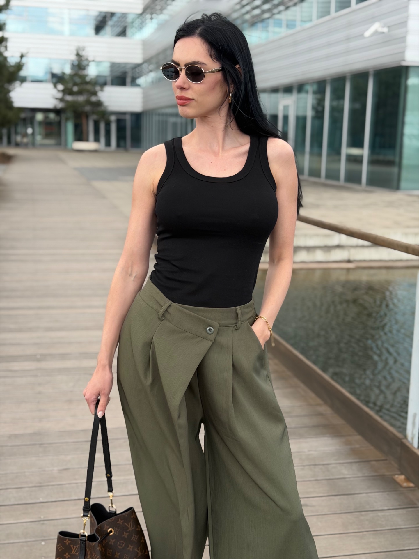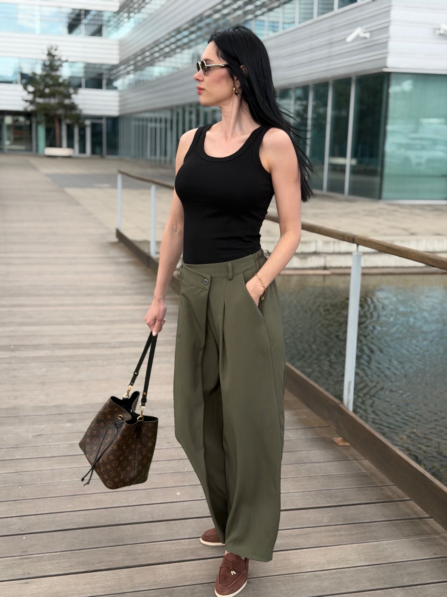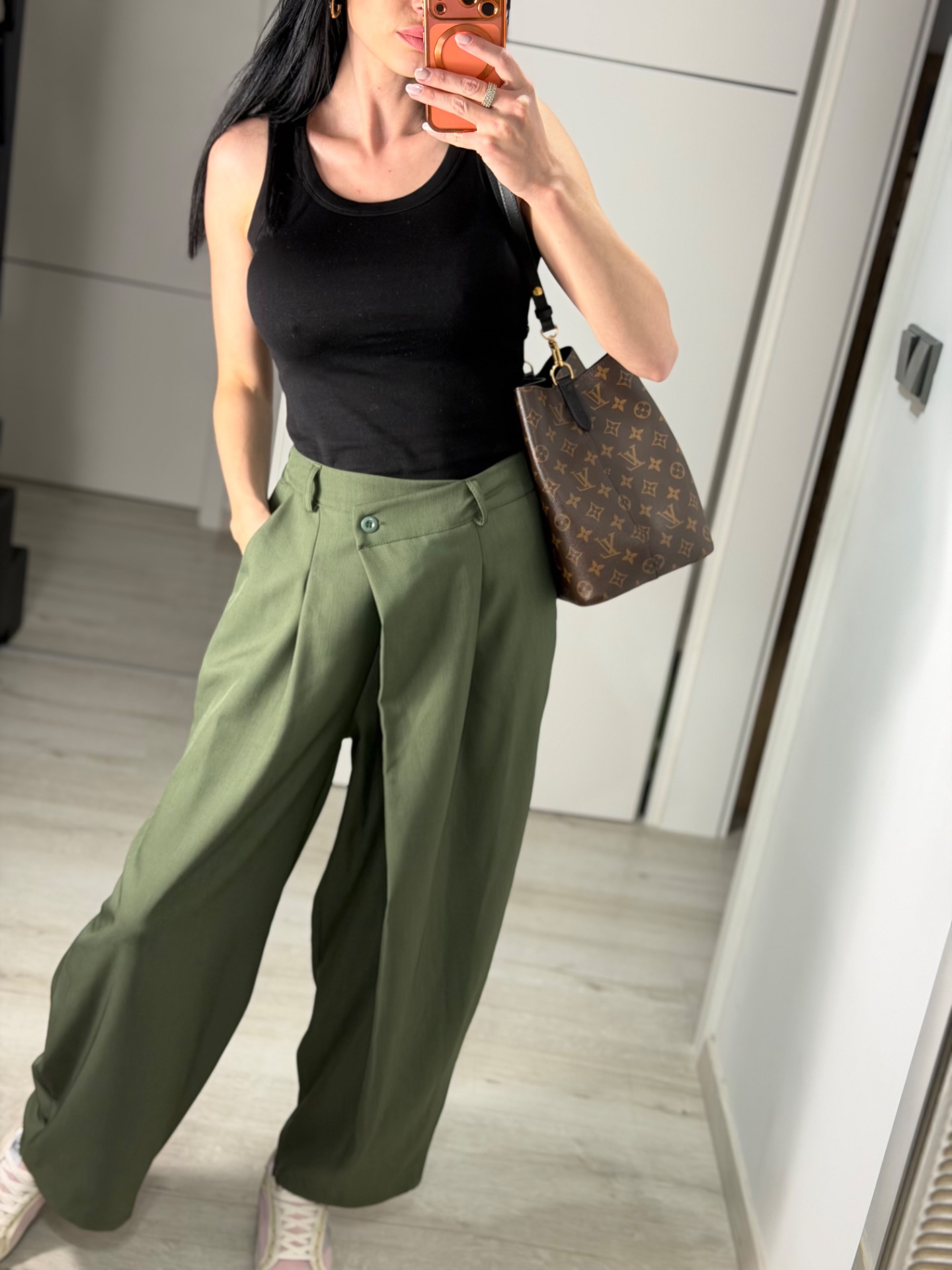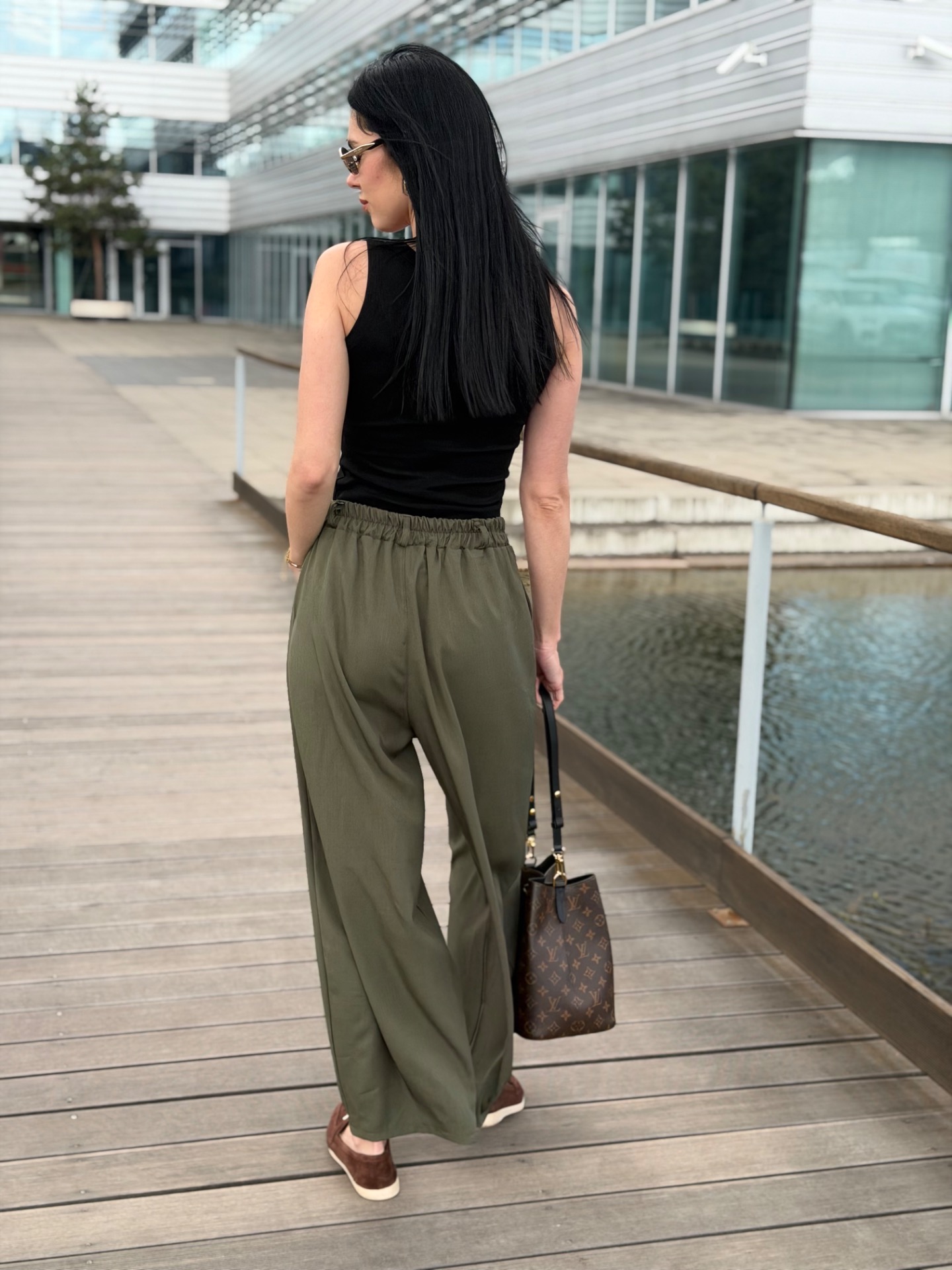 Elastické kalhoty balónové střihu. Materiál je nemačkavý, nevytahuje se a drží svůj tvar. Po stránách kapsy. Skvěle "padnou" každé postavě. Kalhoty mají v pase gumu . Modelka běžně nosí vel. XS na 172 cm vysoké postavě. V nabídce ve více barvách.