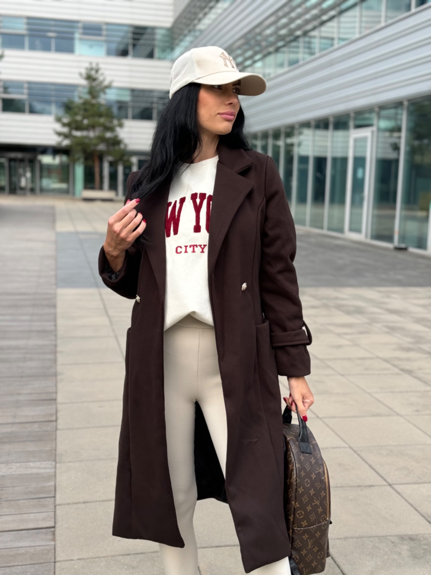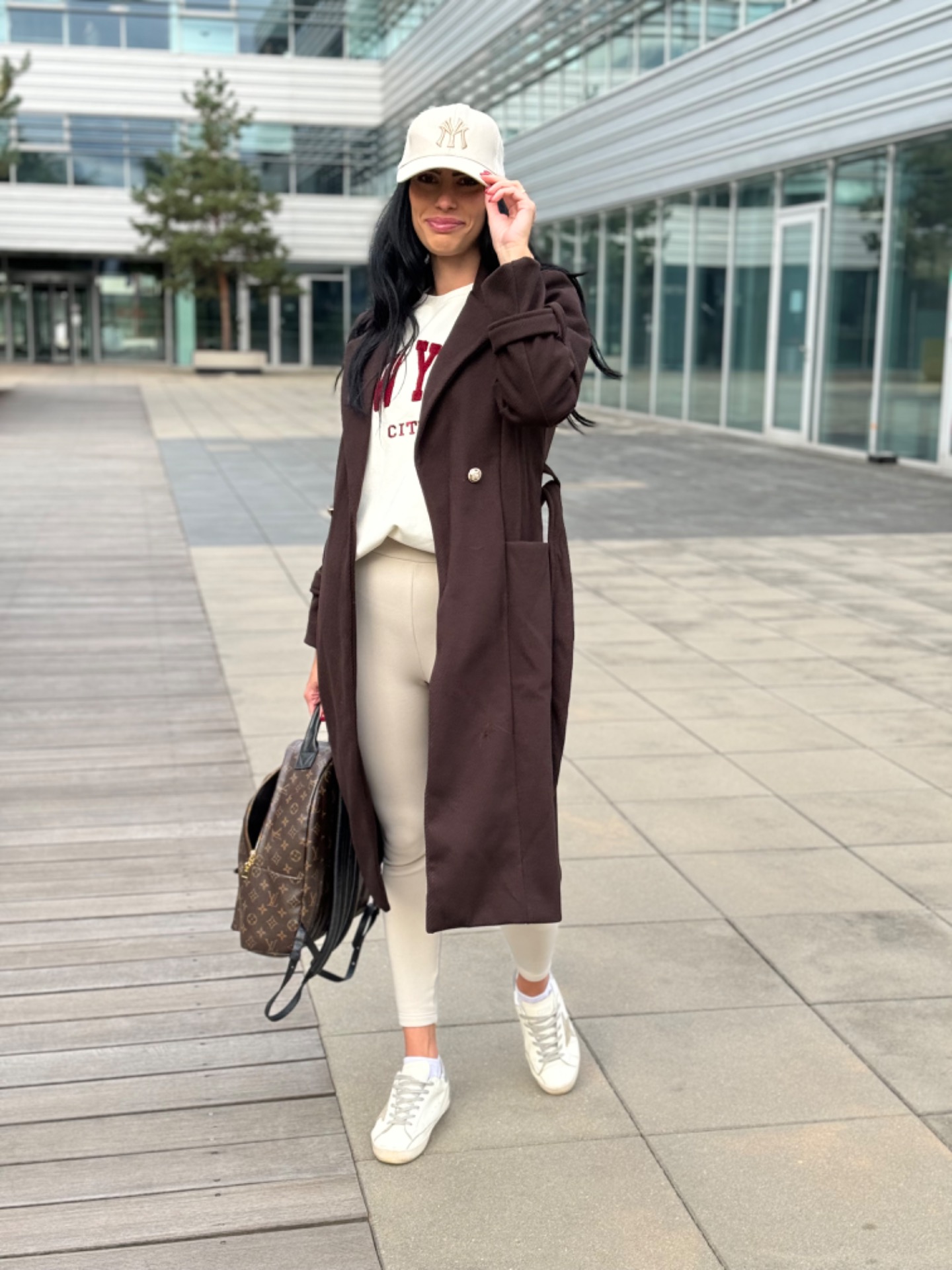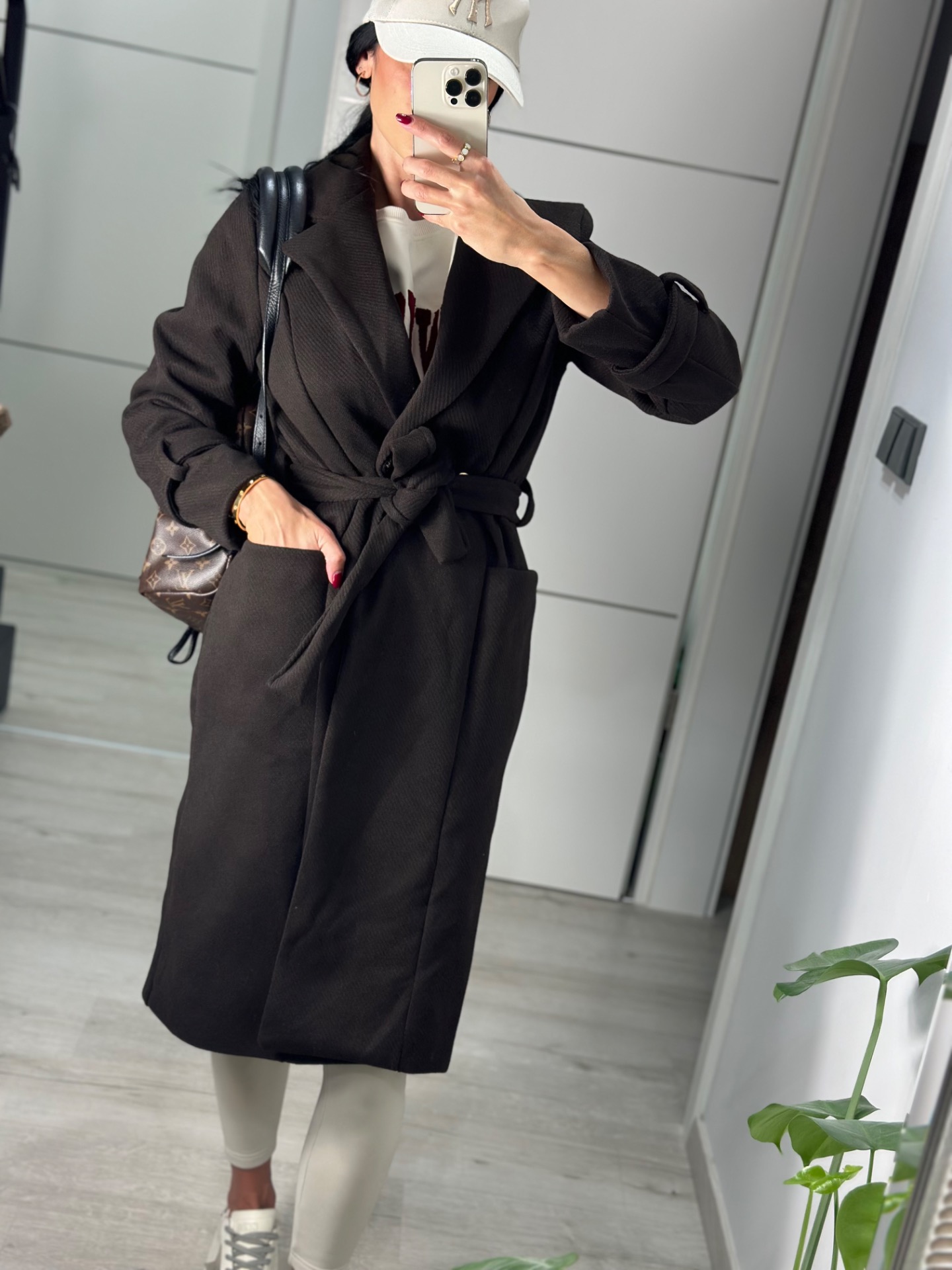 Fleesový kabát z měkkého, velmi "poddajného" materiálu. Kabát má límeček. Zapínání na knoflíky. Je s podšívkou. Foceno na postavě XS/172 cm. Vhodný XS-L.