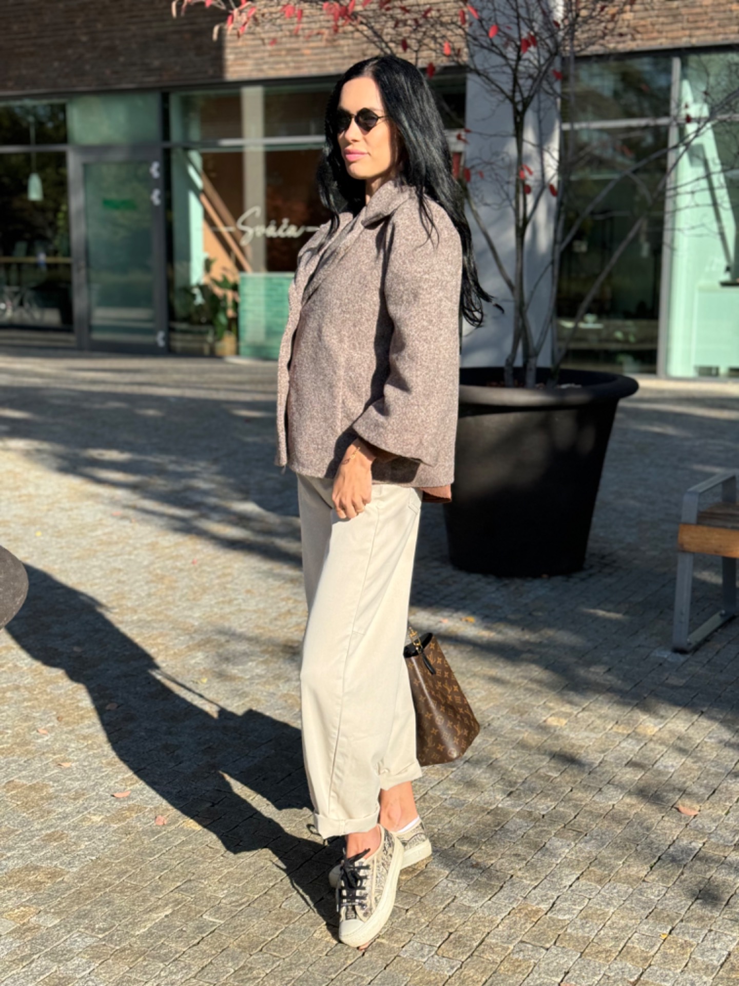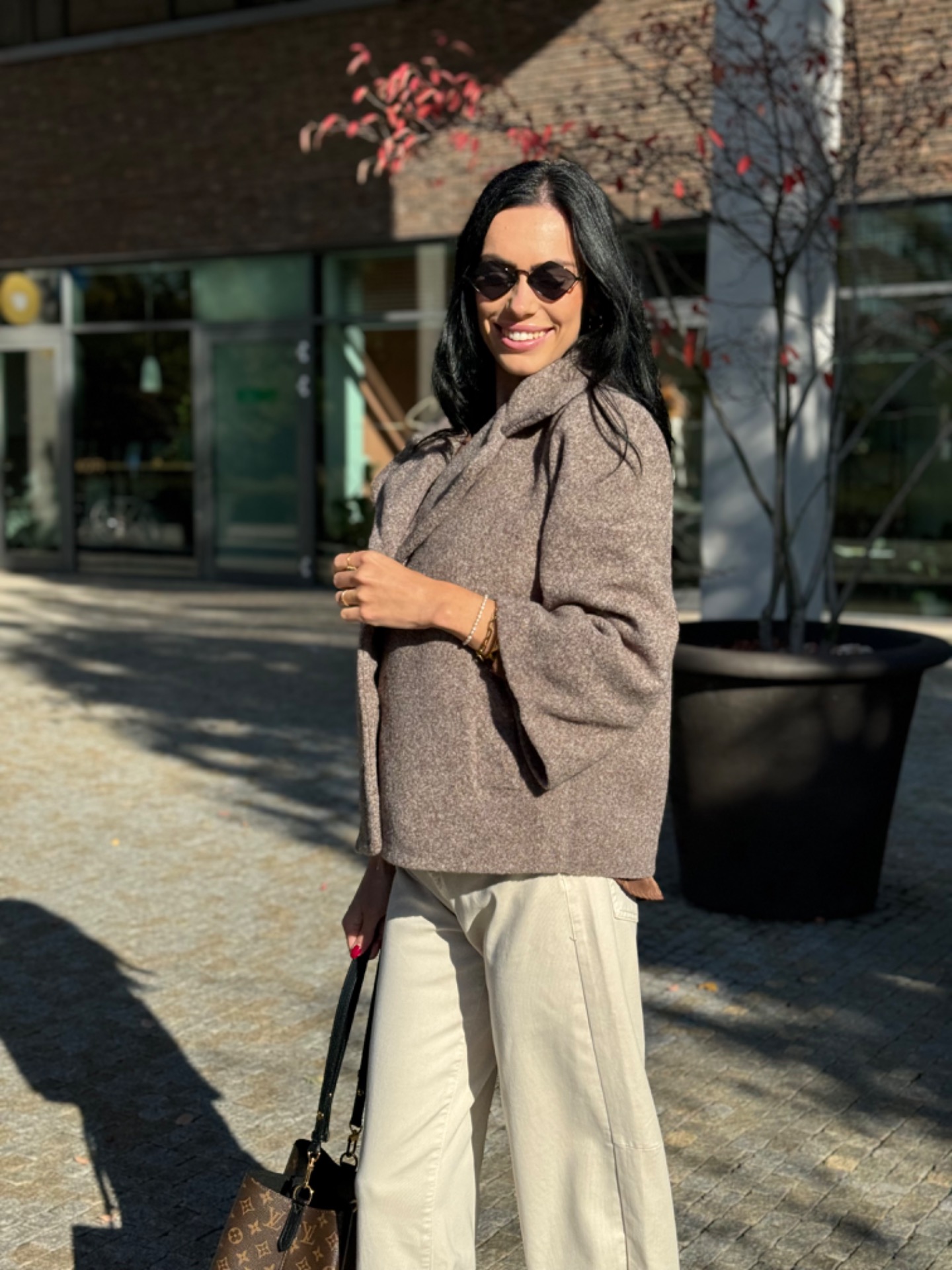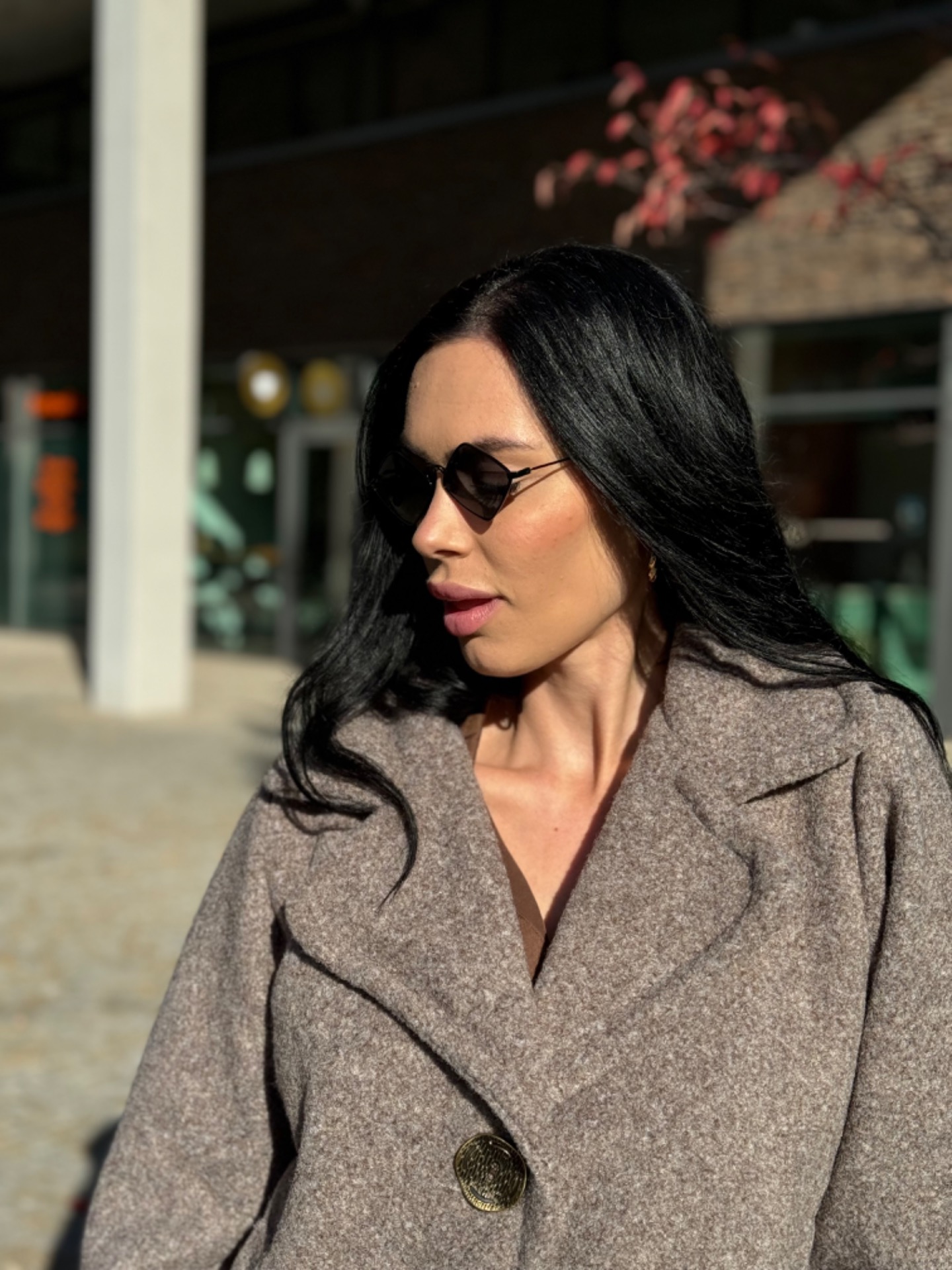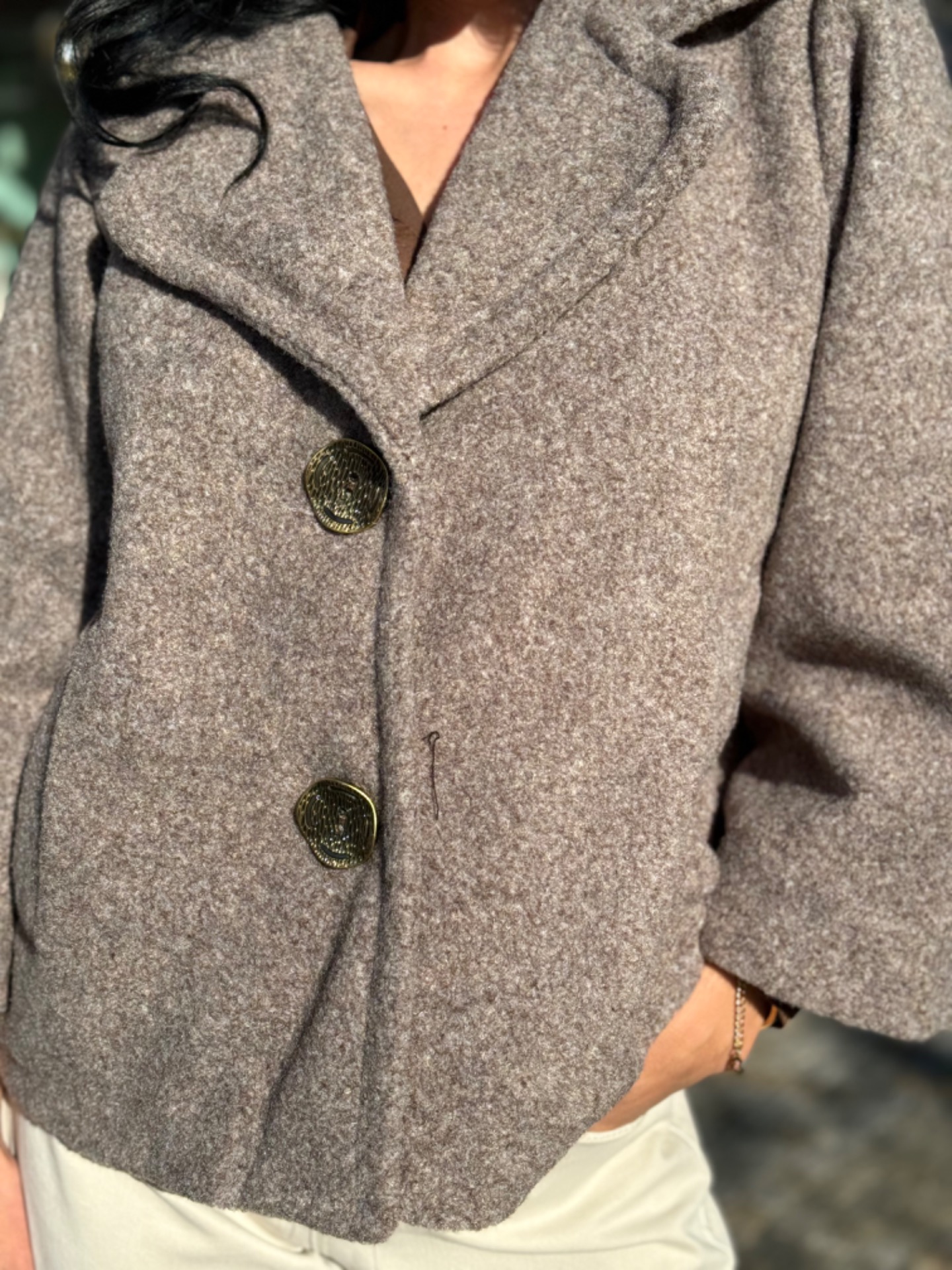 Přechodový kabát z měkkého "fleesového" materiálu. Bundička má límeček a zapínání na knoflíky.Foceno na postavě XS/172 cm.