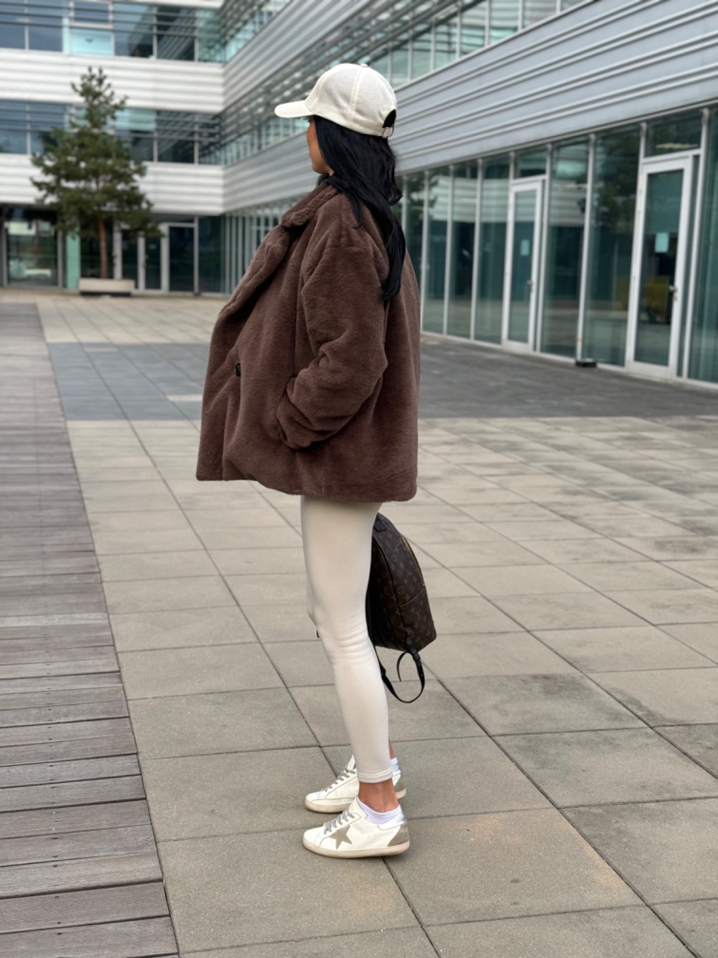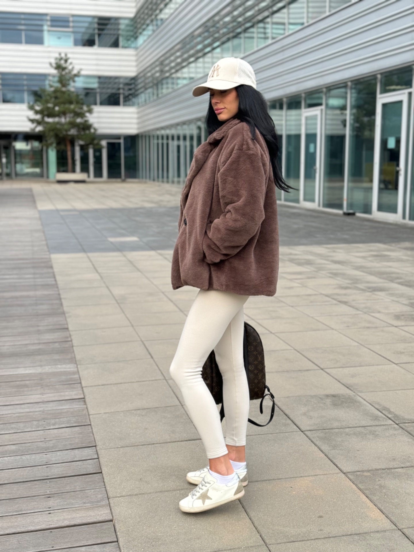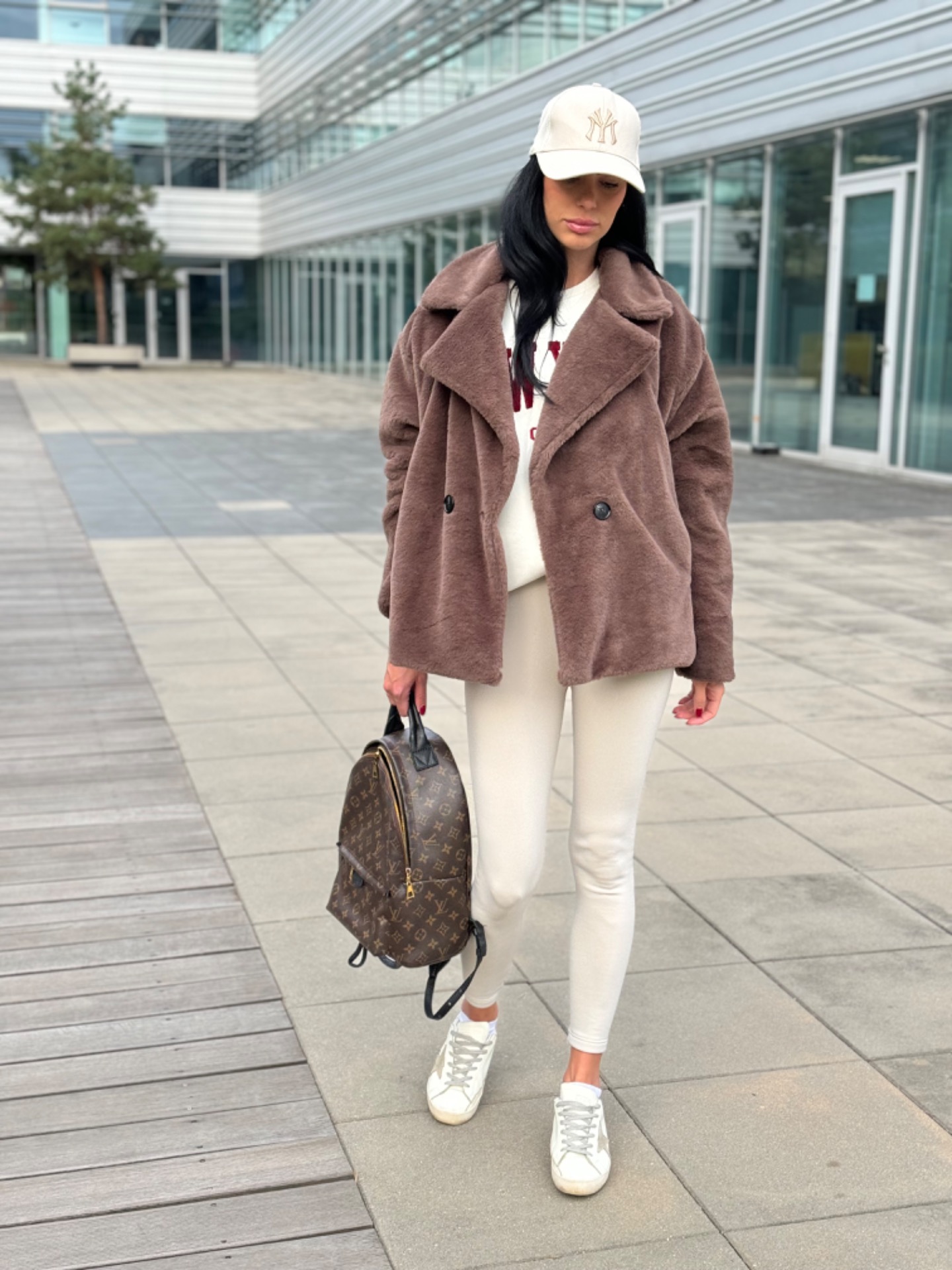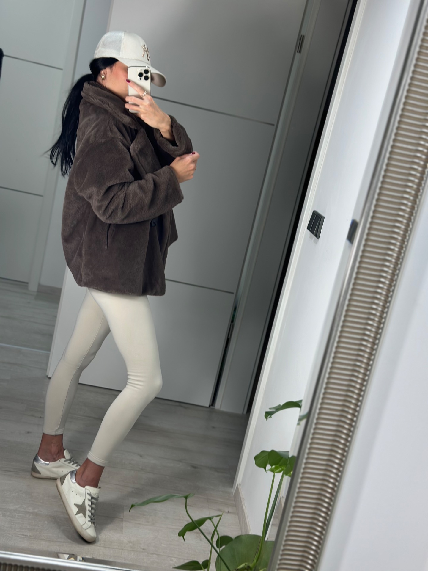 Teddy kabát z měkkého, velmi "poddajného" materiálu. Kabát má límeček. Zapínání na knoflíky. Je s podšívkou. Foceno na postavě XS/172 cm. Vhodný XS-L.