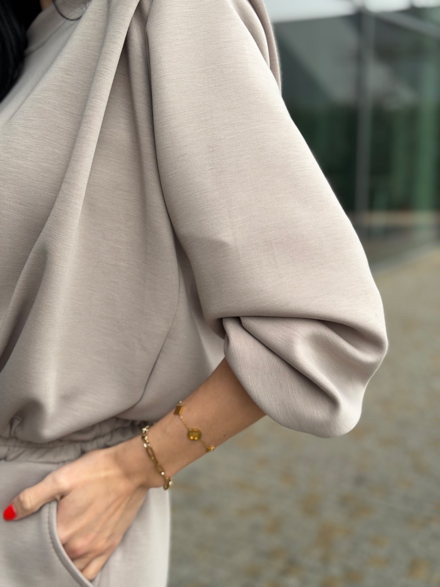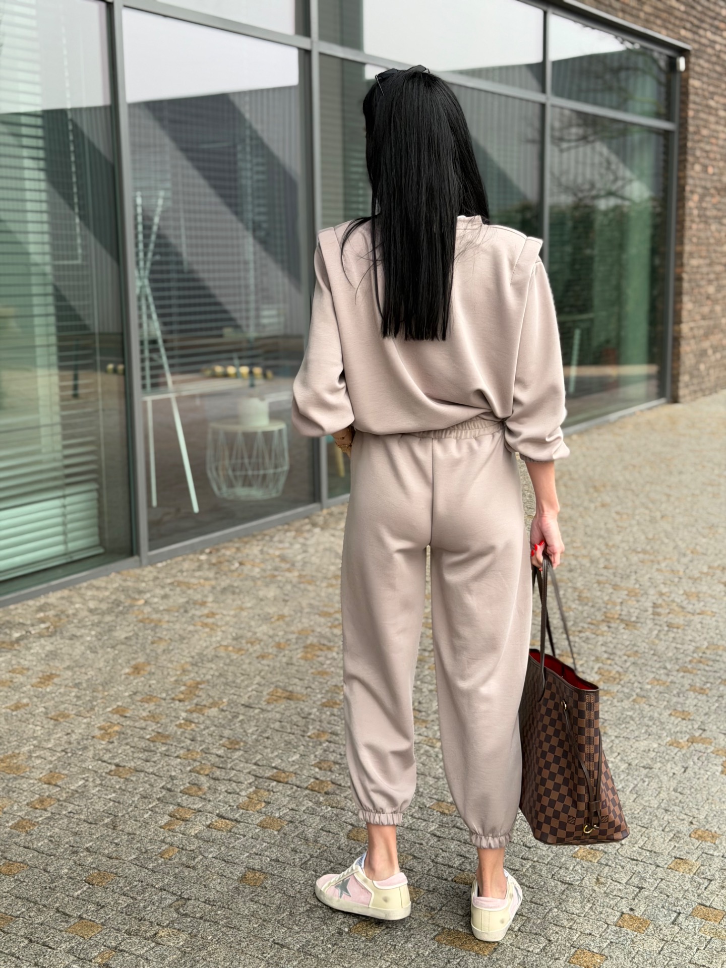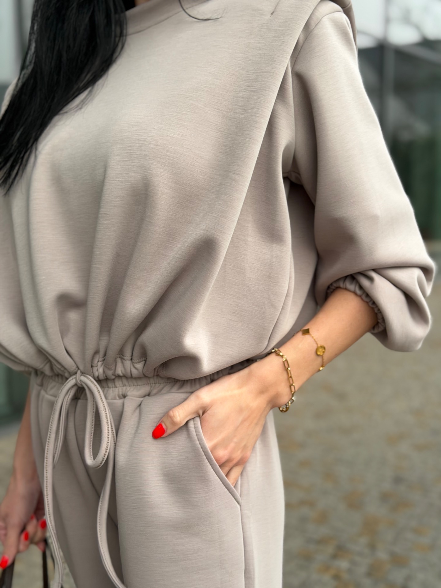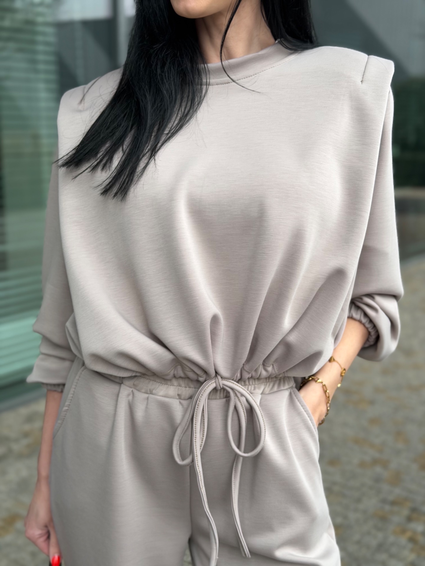 Nádherný, komplet podílem bavlny - velmi kvalitní materiál. Skvělý střih kalhot "sedne" každé postavě. Kalhoty v pase na širokou gumu. Mikina má délku do pasu a nastažení v pase. Foceno na postavě XS/172 cm. Komplet "sedne" XS-M.