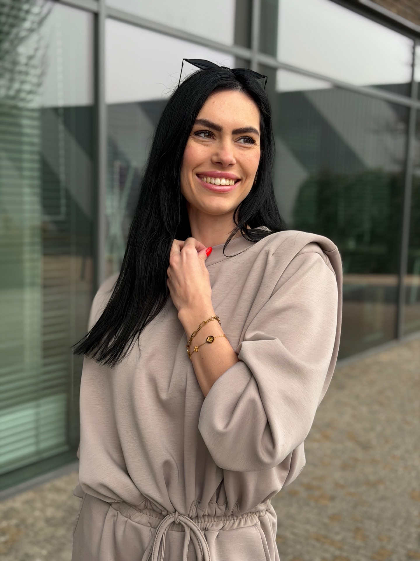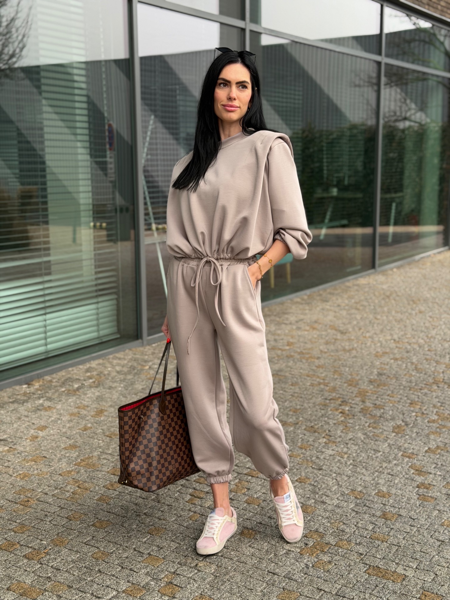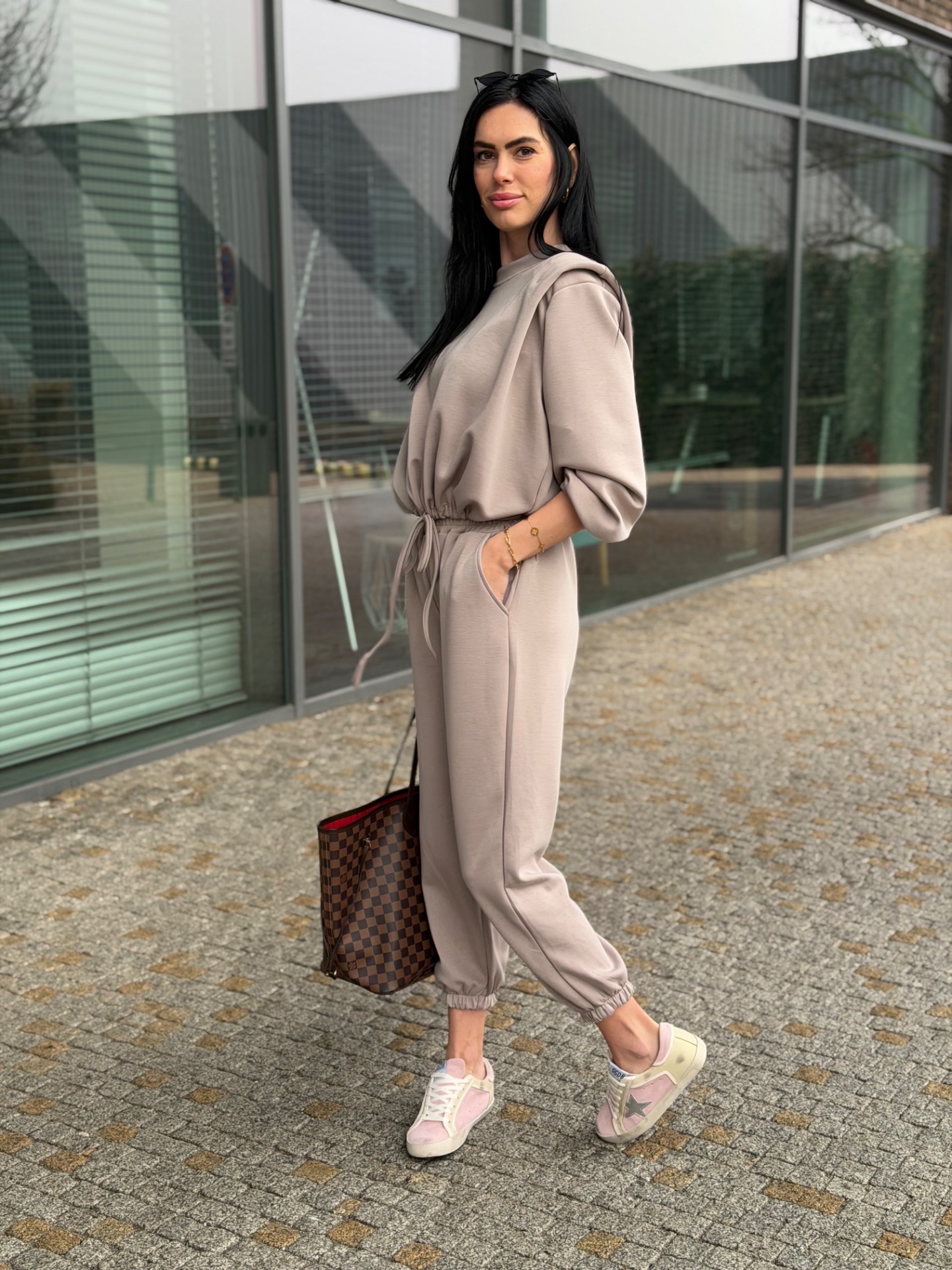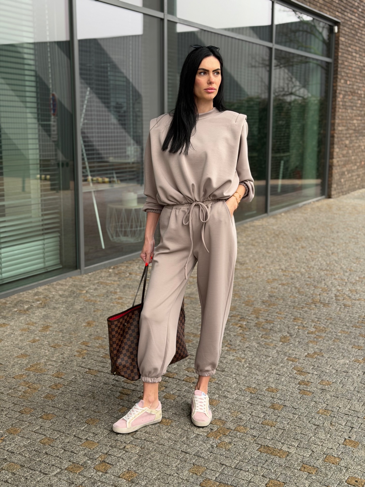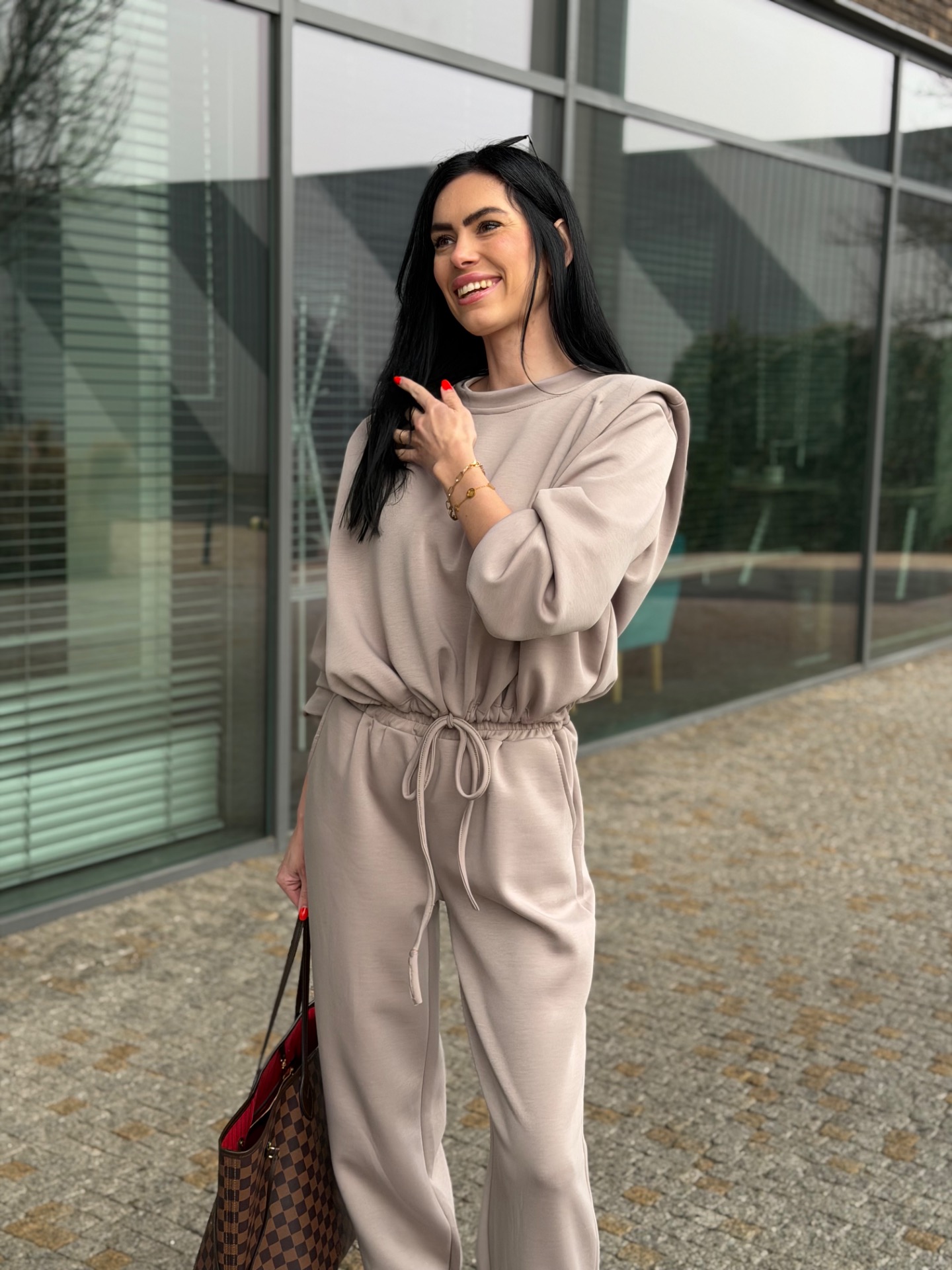 Nádherný, komplet podílem bavlny - velmi kvalitní materiál. Skvělý střih kalhot "sedne" každé postavě. Kalhoty v pase na širokou gumu. Mikina má délku do pasu a nastažení v pase. Foceno na postavě XS/172 cm. Komplet "sedne" XS-M.