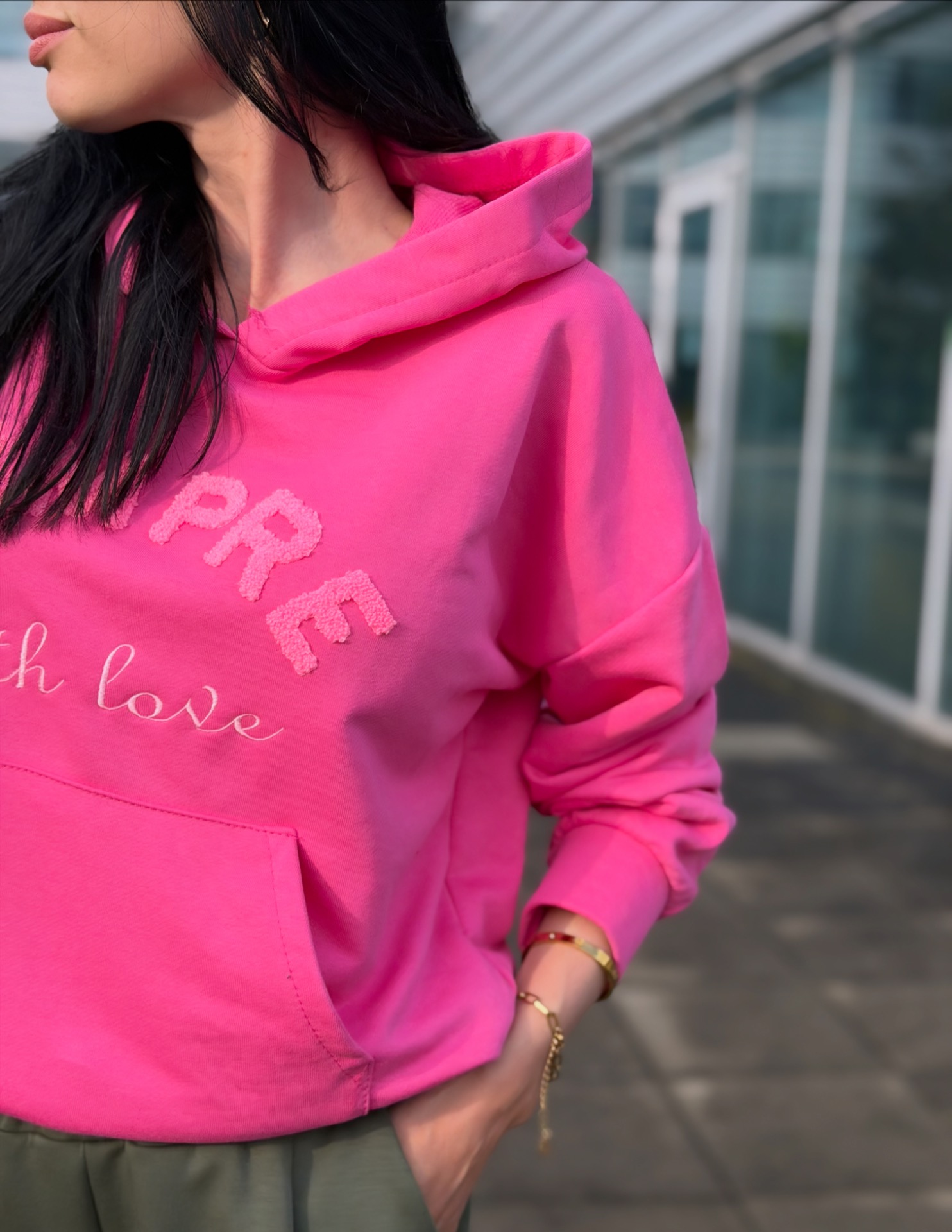 Bavlněná mikina s kapucí. Mikina není zateplená-vhodná na jaro. Foceno na postavě XS/172 cm. V nabídce v několika barvách.