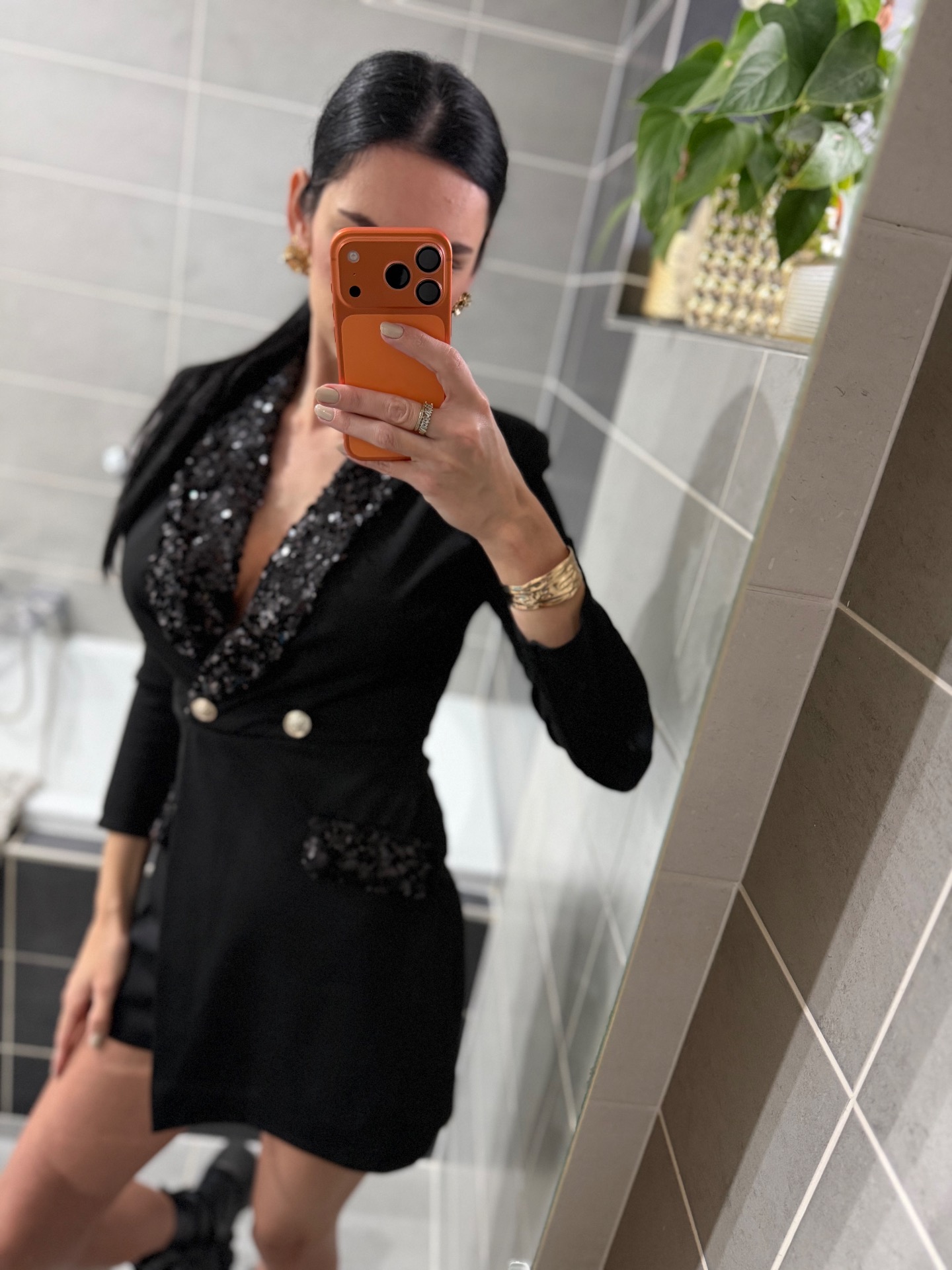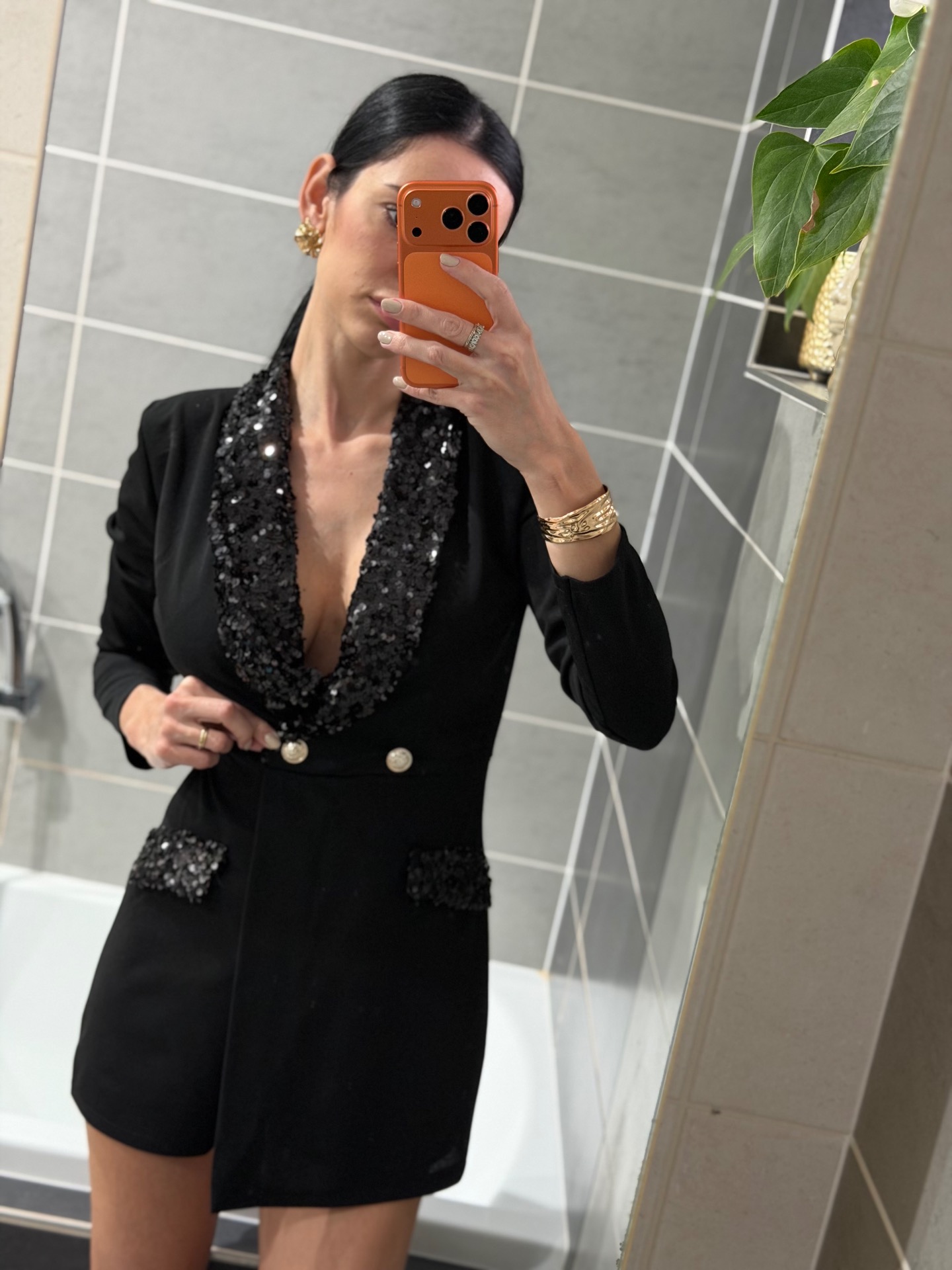 Elastický overal z kvalitního, stahujícího úpletu. Overal "dělají krásnou ženskou siluetu". Materiál "krásně drží" tvar. Te předu šaty ze zadu kraťásky. Extra pružný materiál.