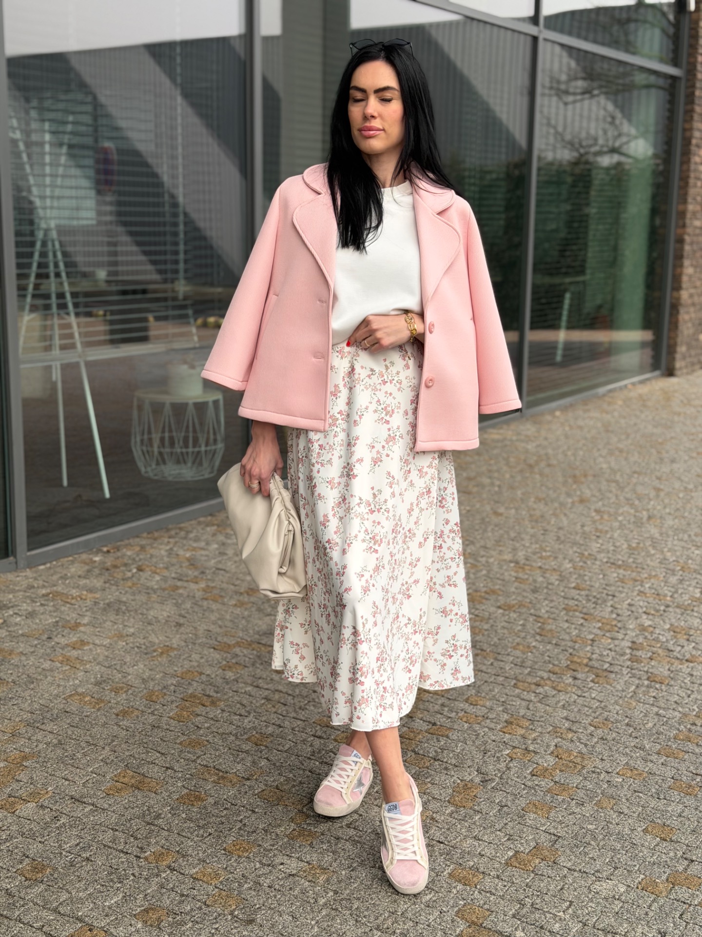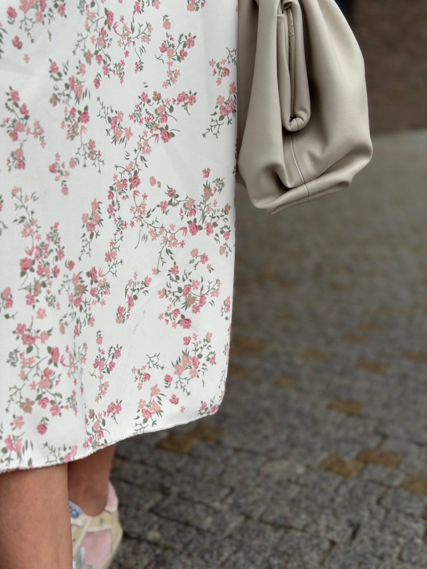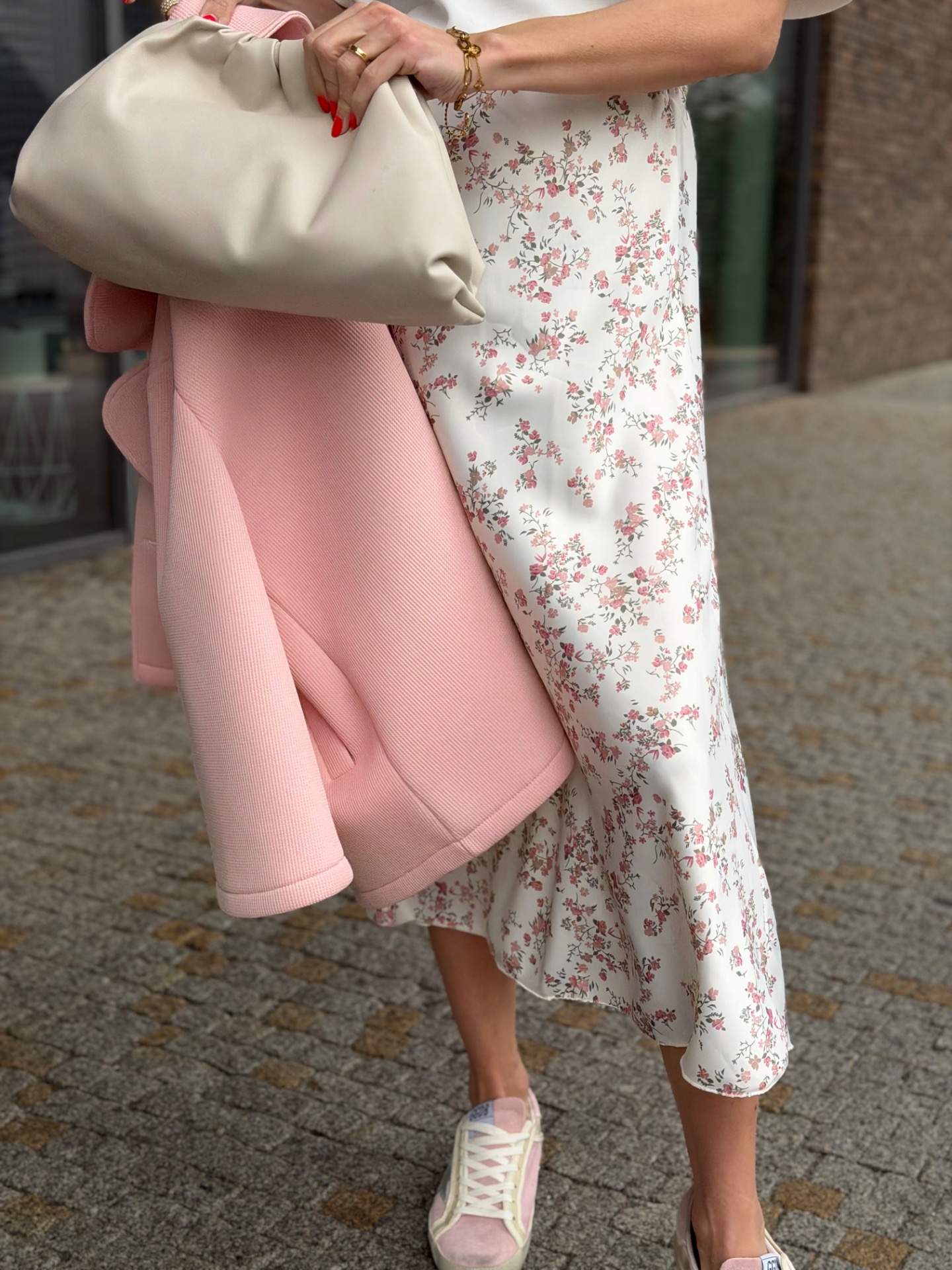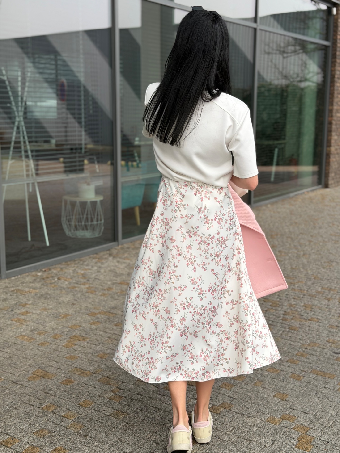 Sukně "saténového" vzhledu a v moderní "midi" délce. Sukně má v pase gumu a střih sukně je volný - "schová všechny nedostatky".
