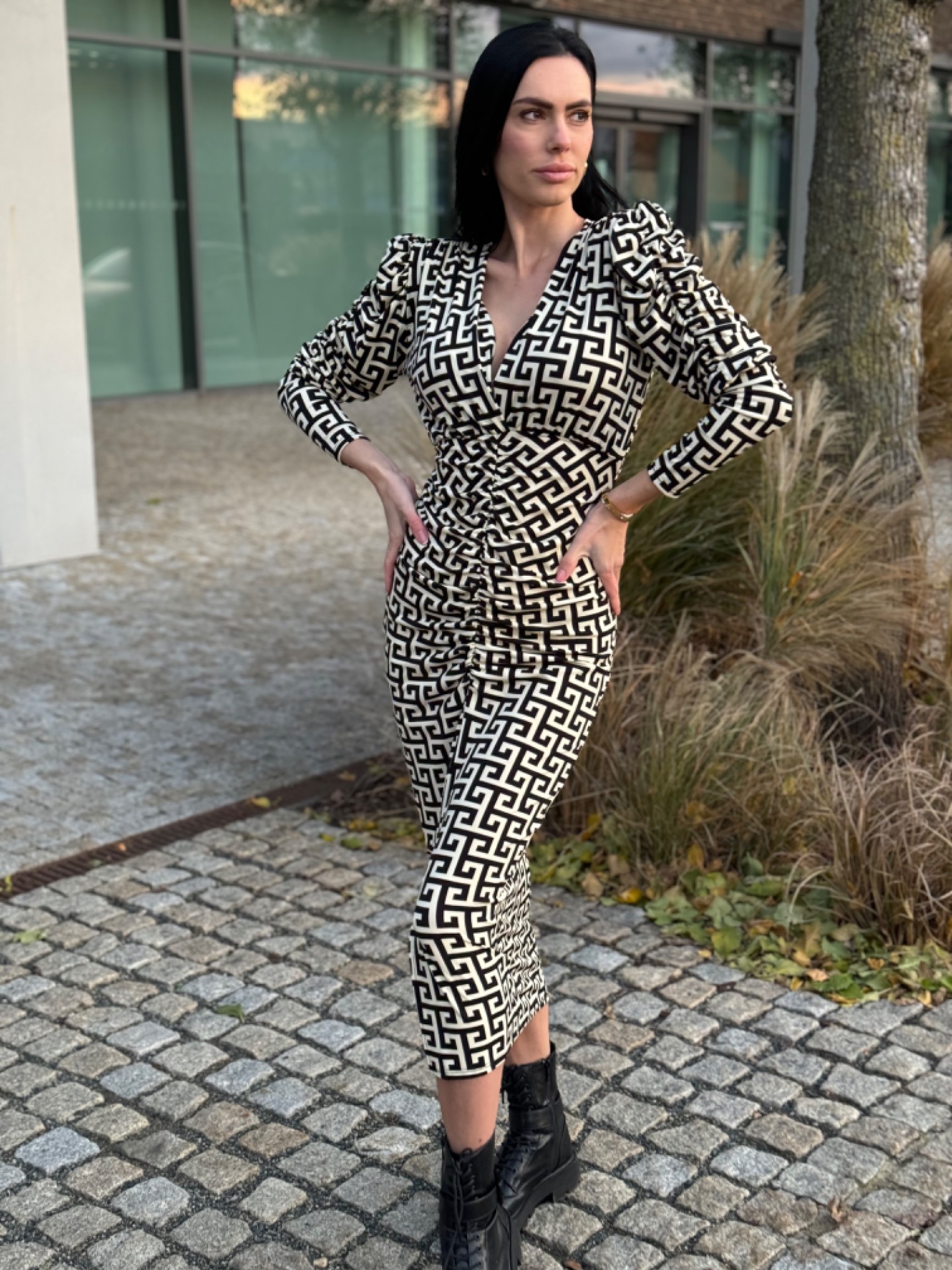 Elastické šaty z kvalitního, stahujícího úpletu. Šaty "dělají krásnou ženskou siluetu". Materiál "krásně drží" tvar. Šaty mají řasení. Extra pružný materiál.