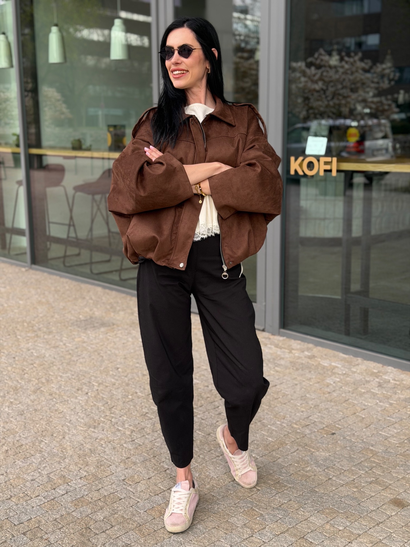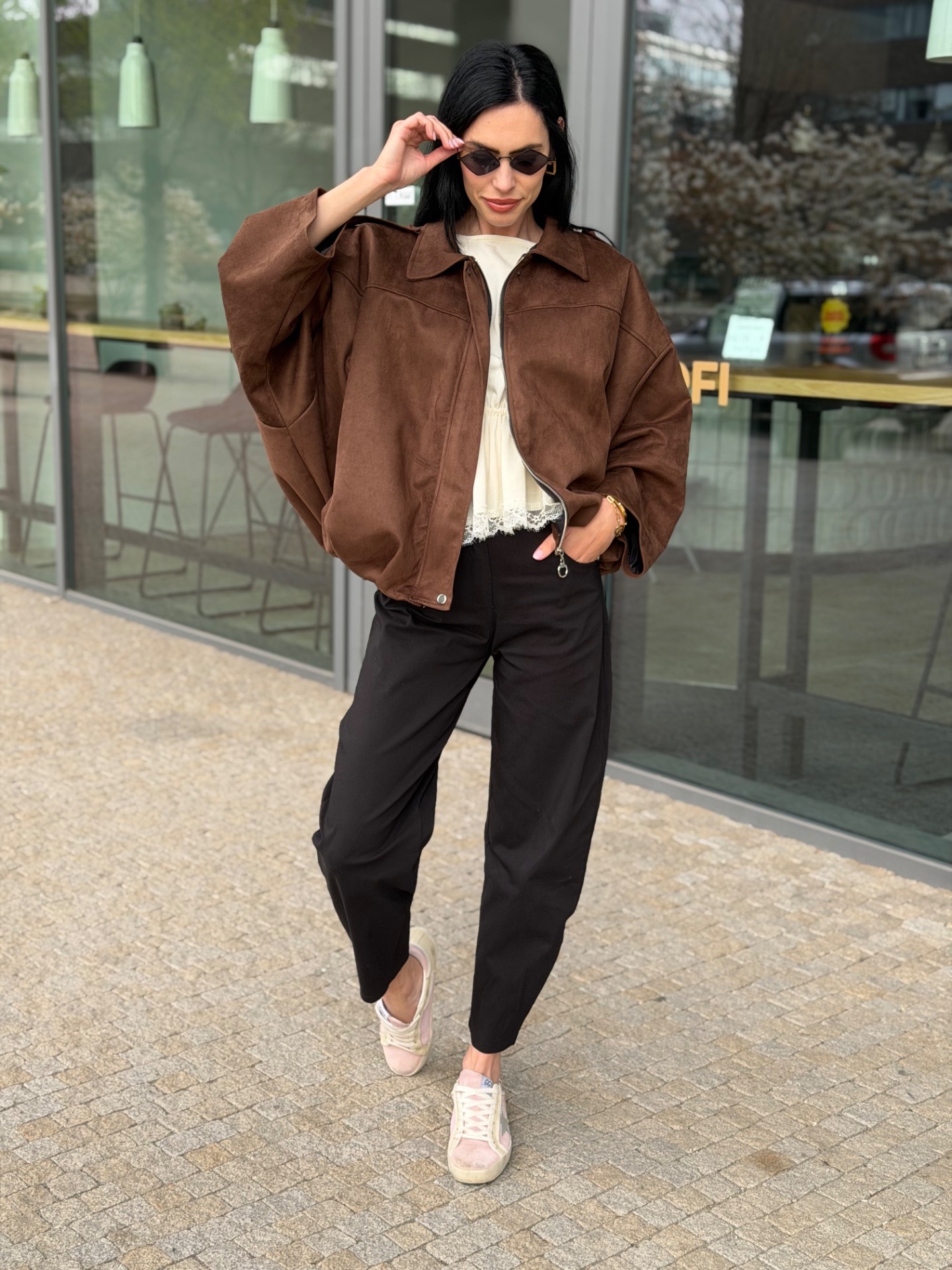Přechodový bomber do pasu z měkkého materiálu. Má podšívku a zapínání na zip. Foceno na postavě XS/172 cm.V nabídce v několika barvách