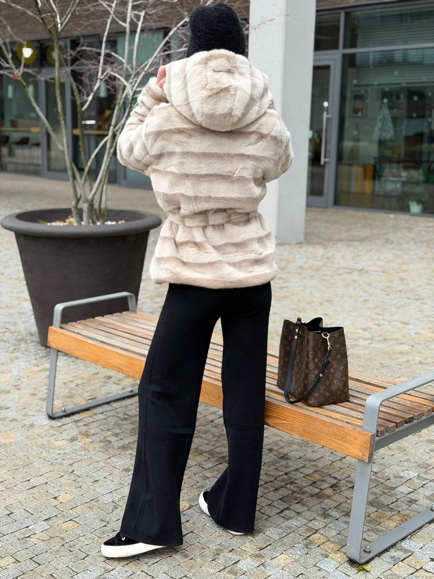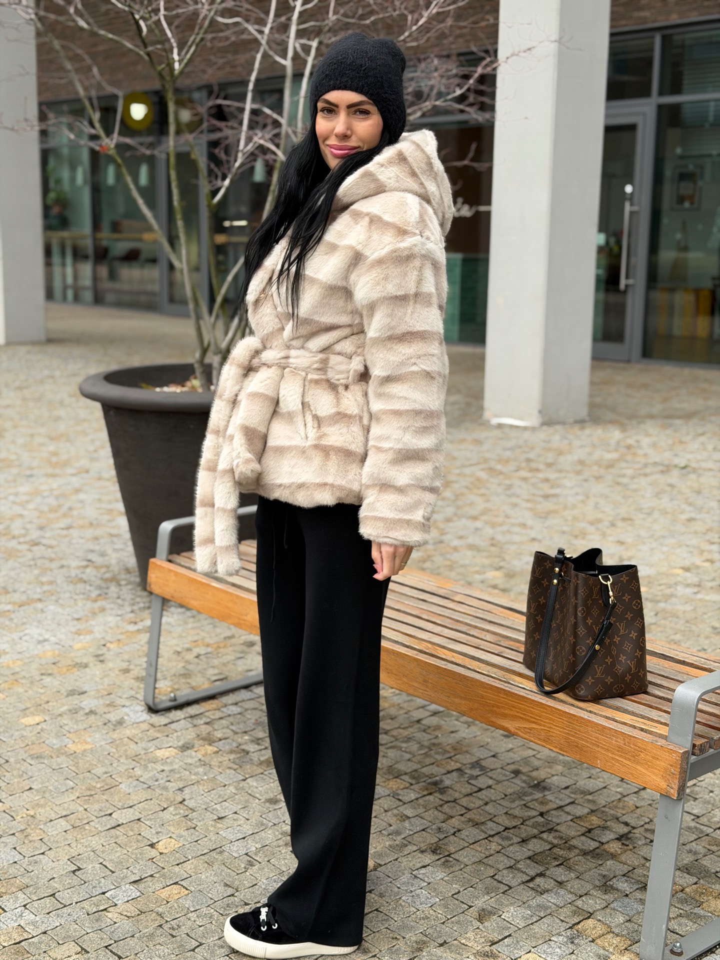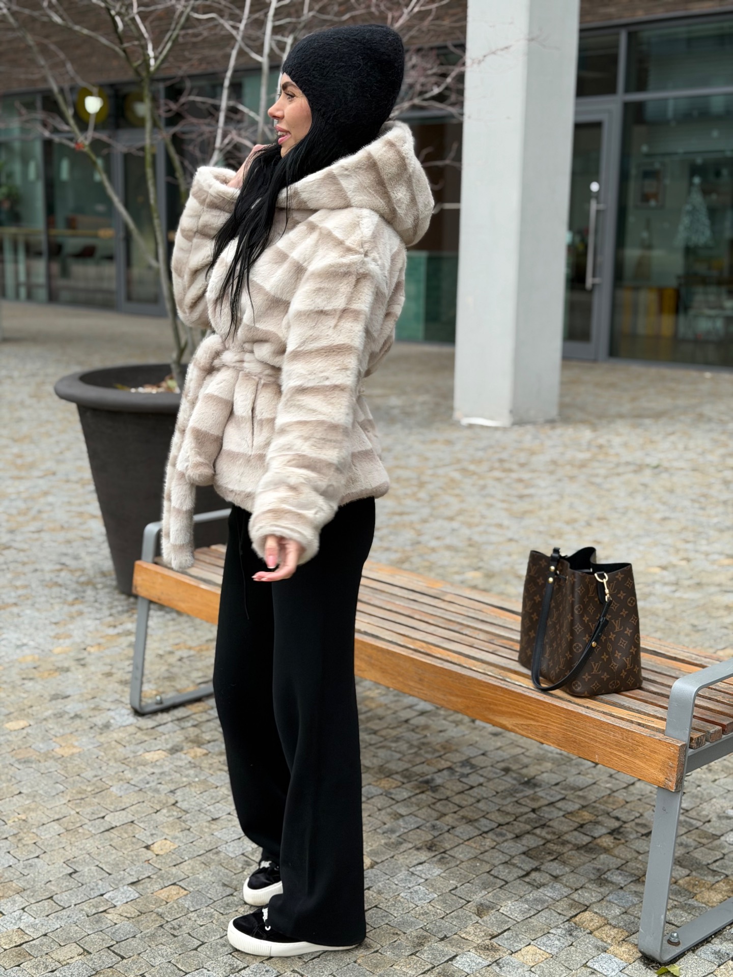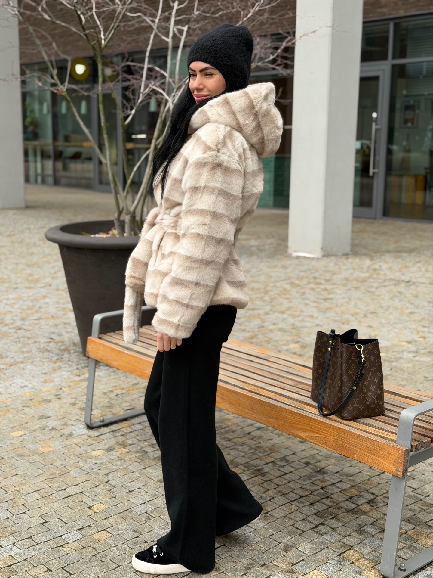 Extra zateplená zimní bunda s ,,kožíškem". .Bunda je z měkké "kožešiny" a opravdu "krásně zahřeje". Zapínání na druky. Vpase na stažení páskem. Foceno na postavě XS/172 cm. Vhodný XS-M.