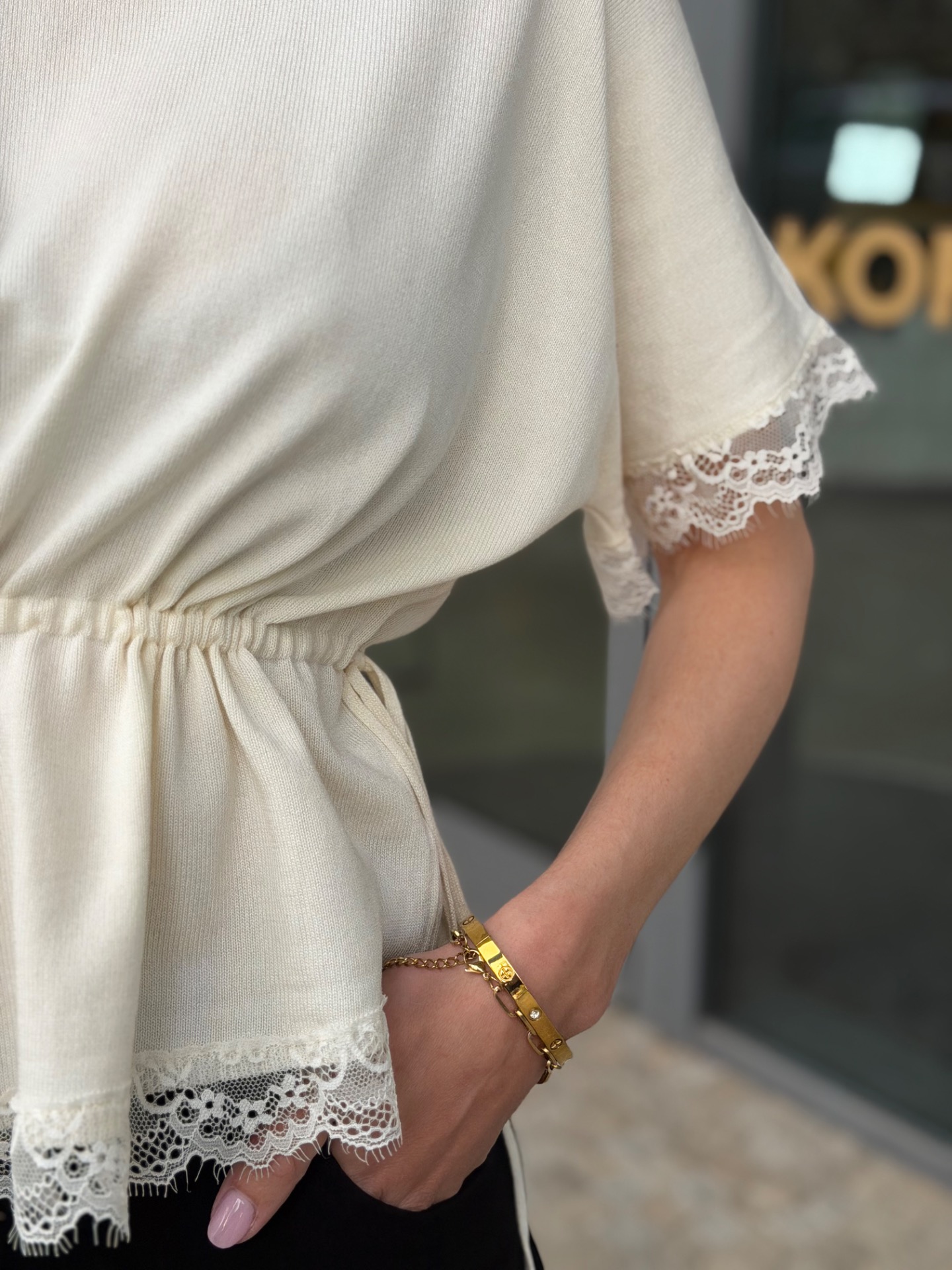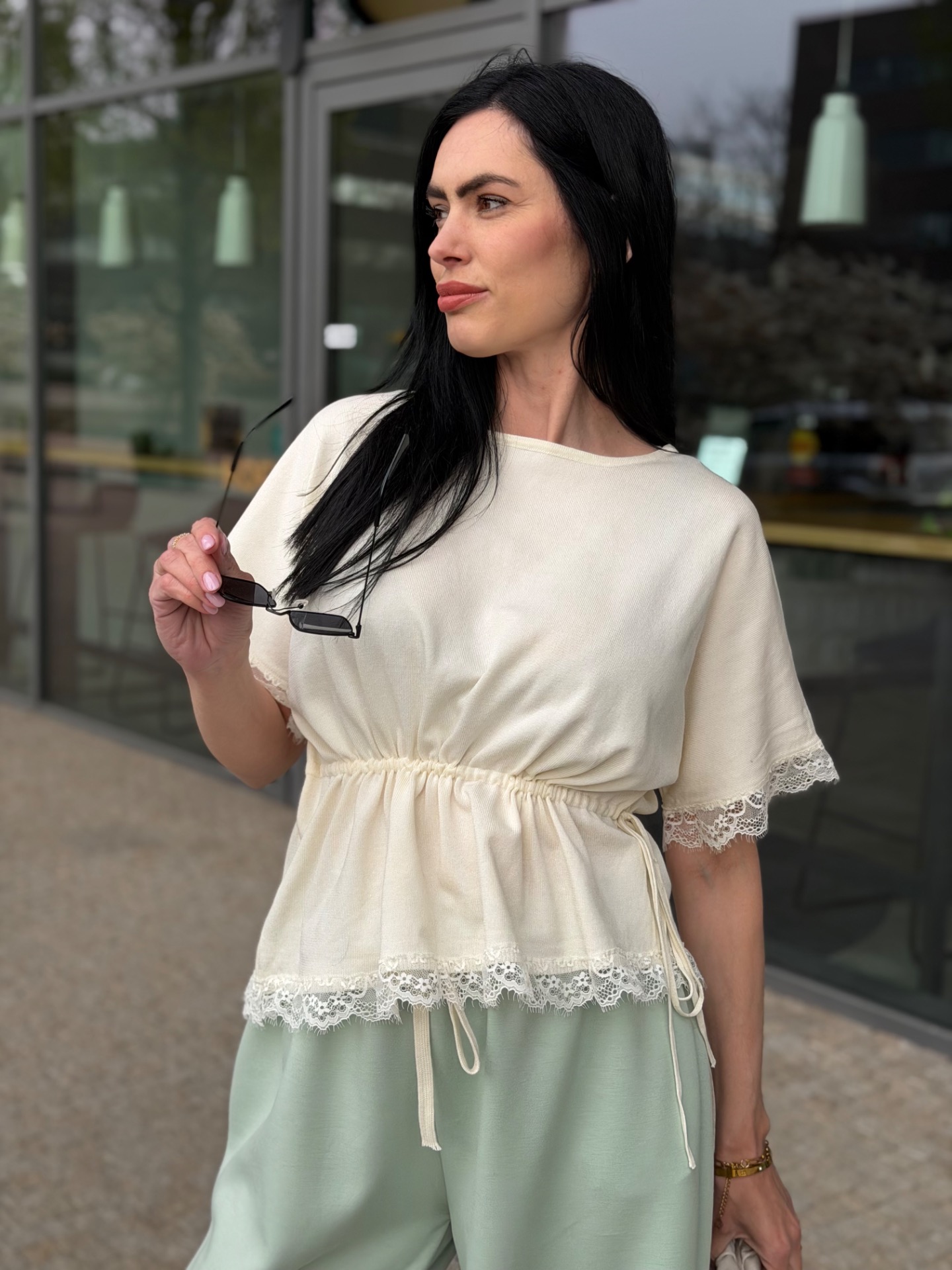 Upletový top z příjemného a pružného materiálu. Zdobený romantickou krajkou a v pase na stažení. Foceno na postavě XS/172 cm. V nabídce ve více barvách.