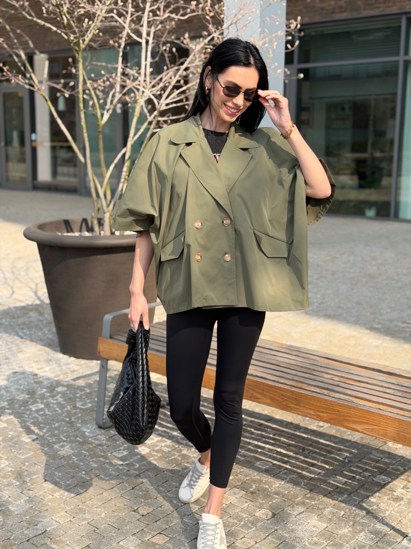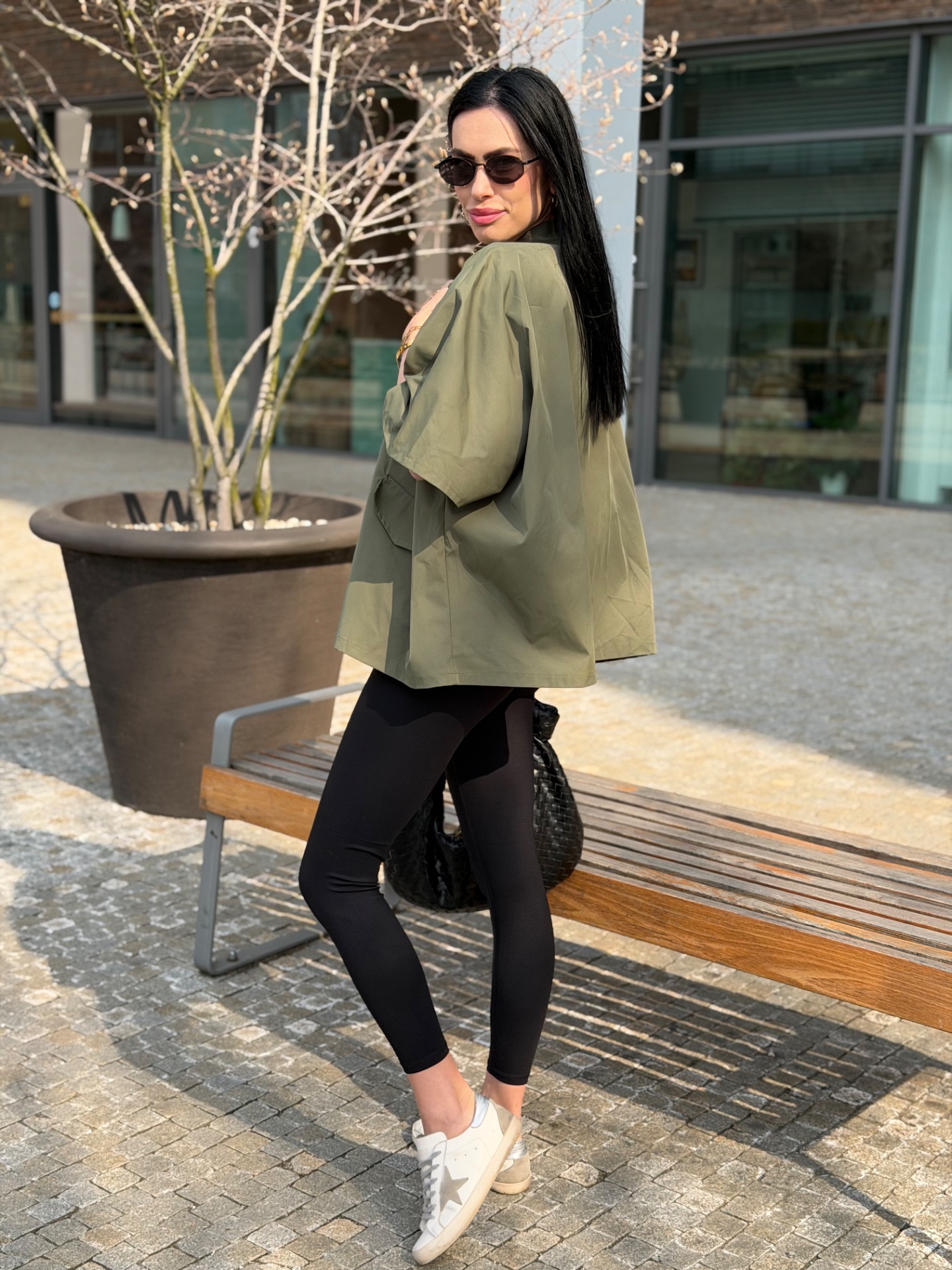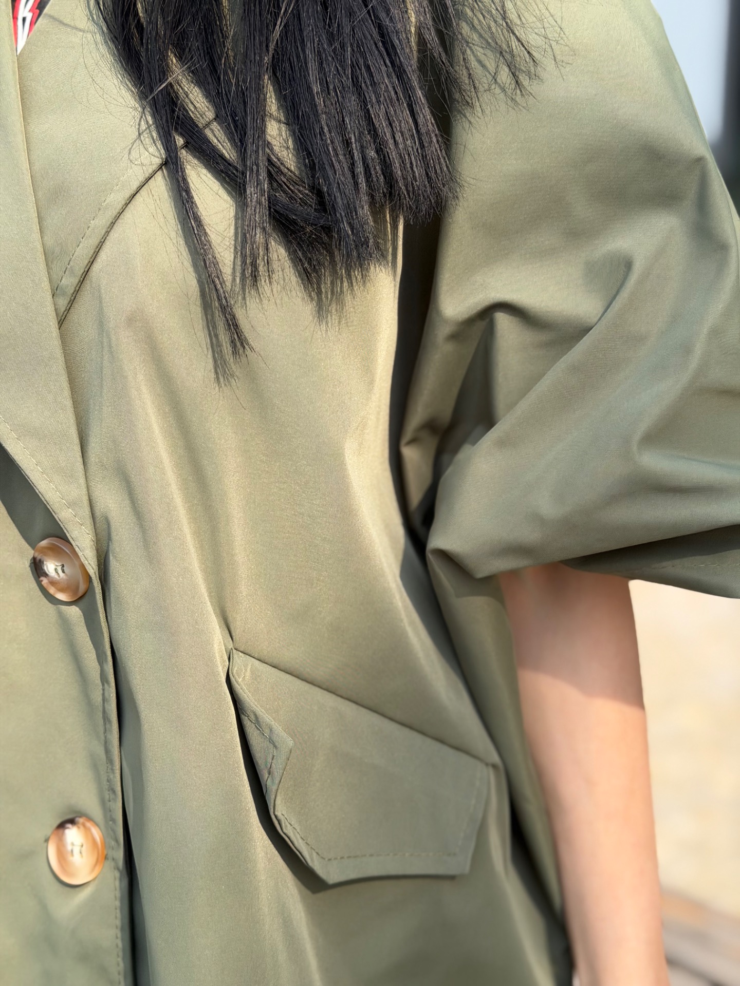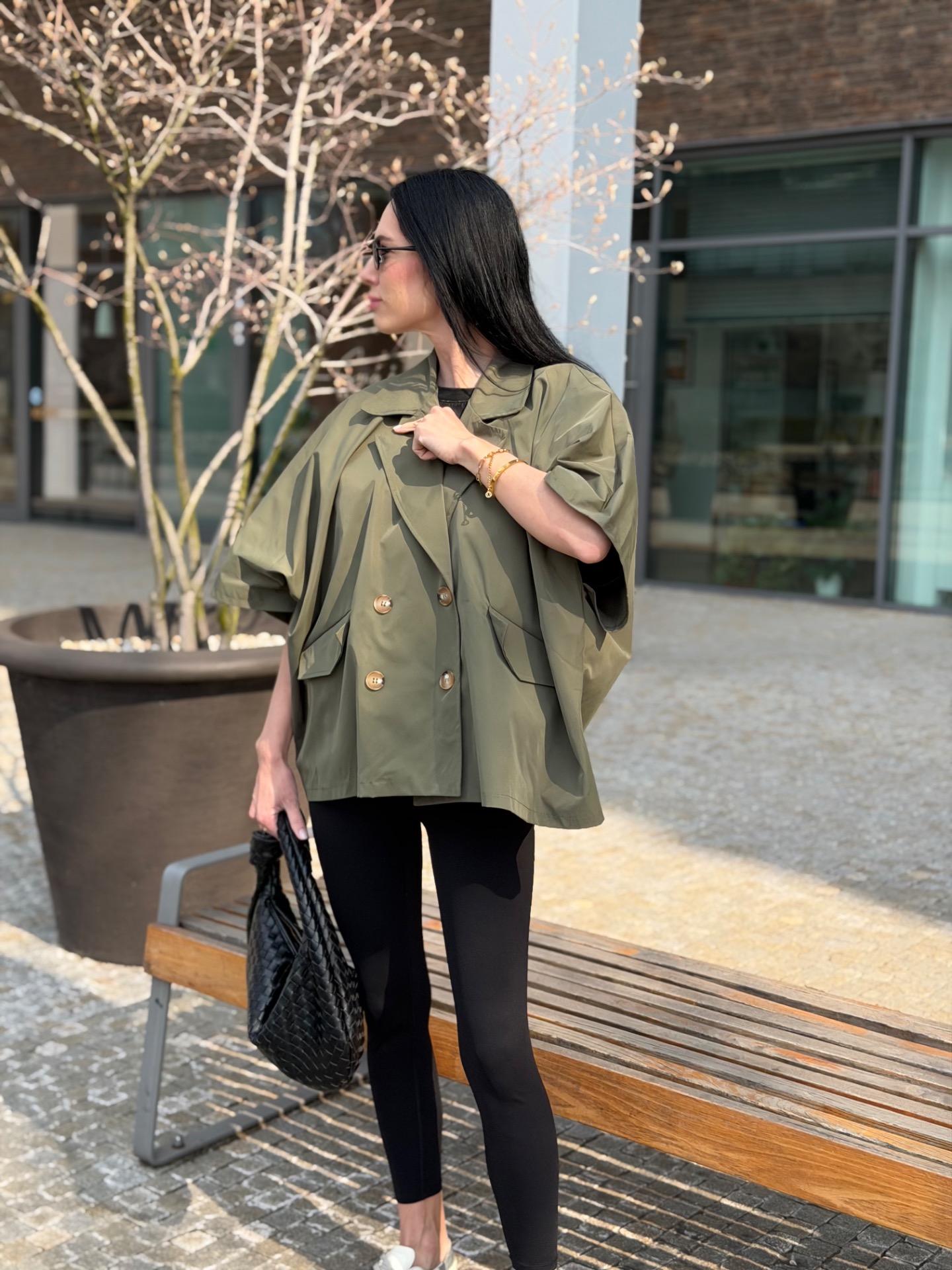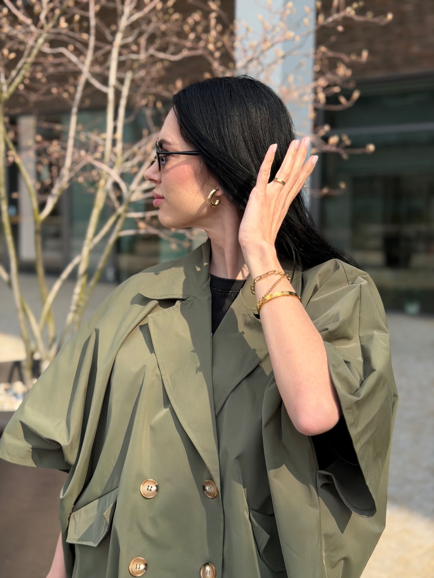 Volný trenchcoat bundička v oblíbeném áčkovém střihu. Zapínání na knoflíky. Foceno na postavě XS/172 cm. V nabídce ve více barvách